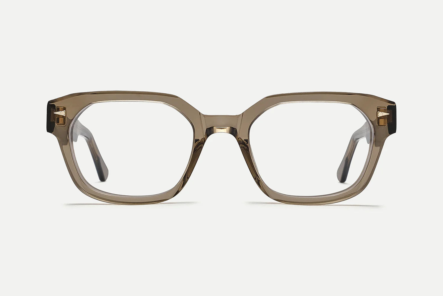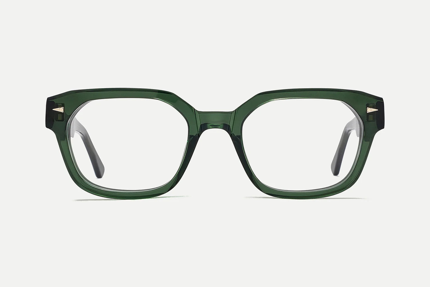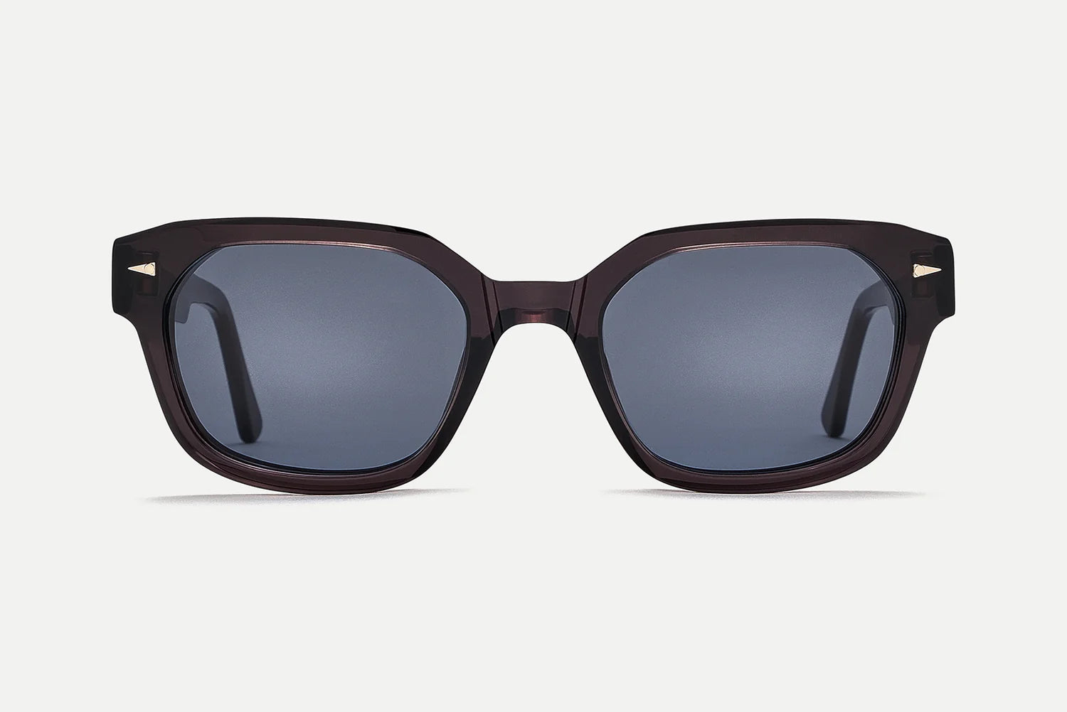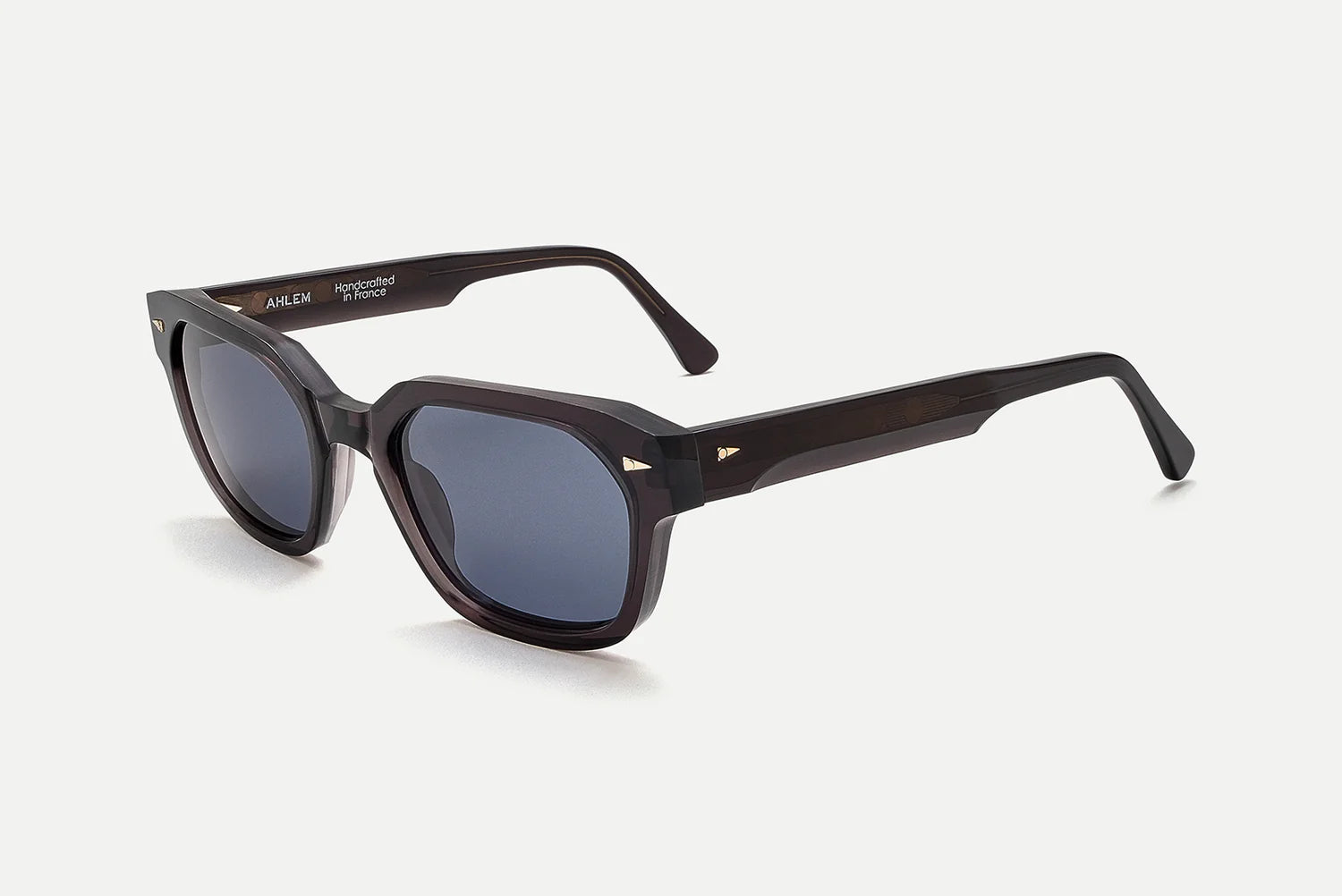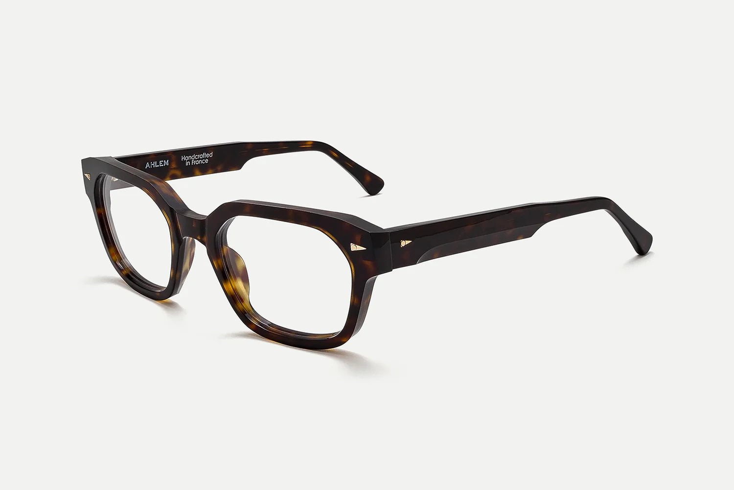 Electroplated 22k gold hinges, custom design temple core, beveled temples, and signature geometric accents.