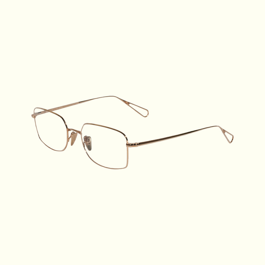Constructed from beta titanium electroplated in 22k gold, filigreed Titanium nose pads, and signature temple tips.