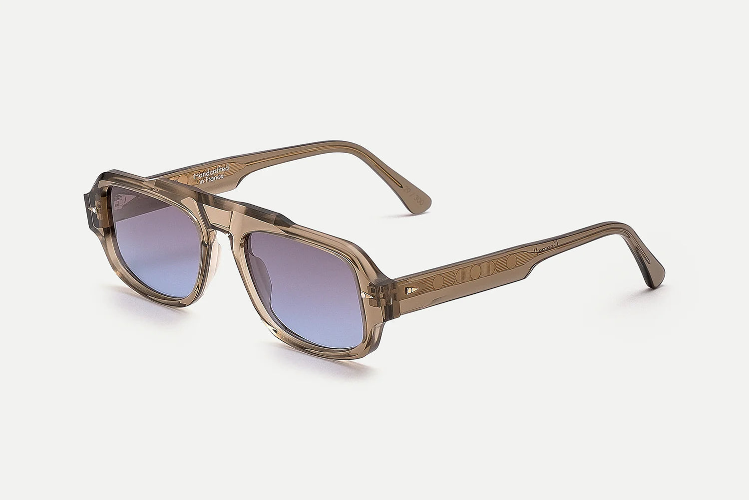 -Temples are 12mm wide with a single raw-cut bevel for a striking contrast between matte and polish