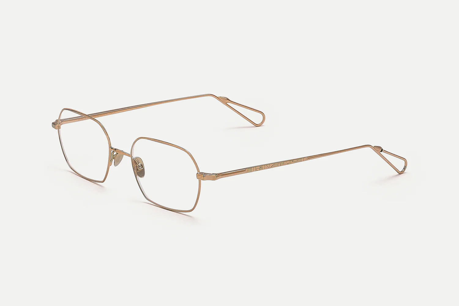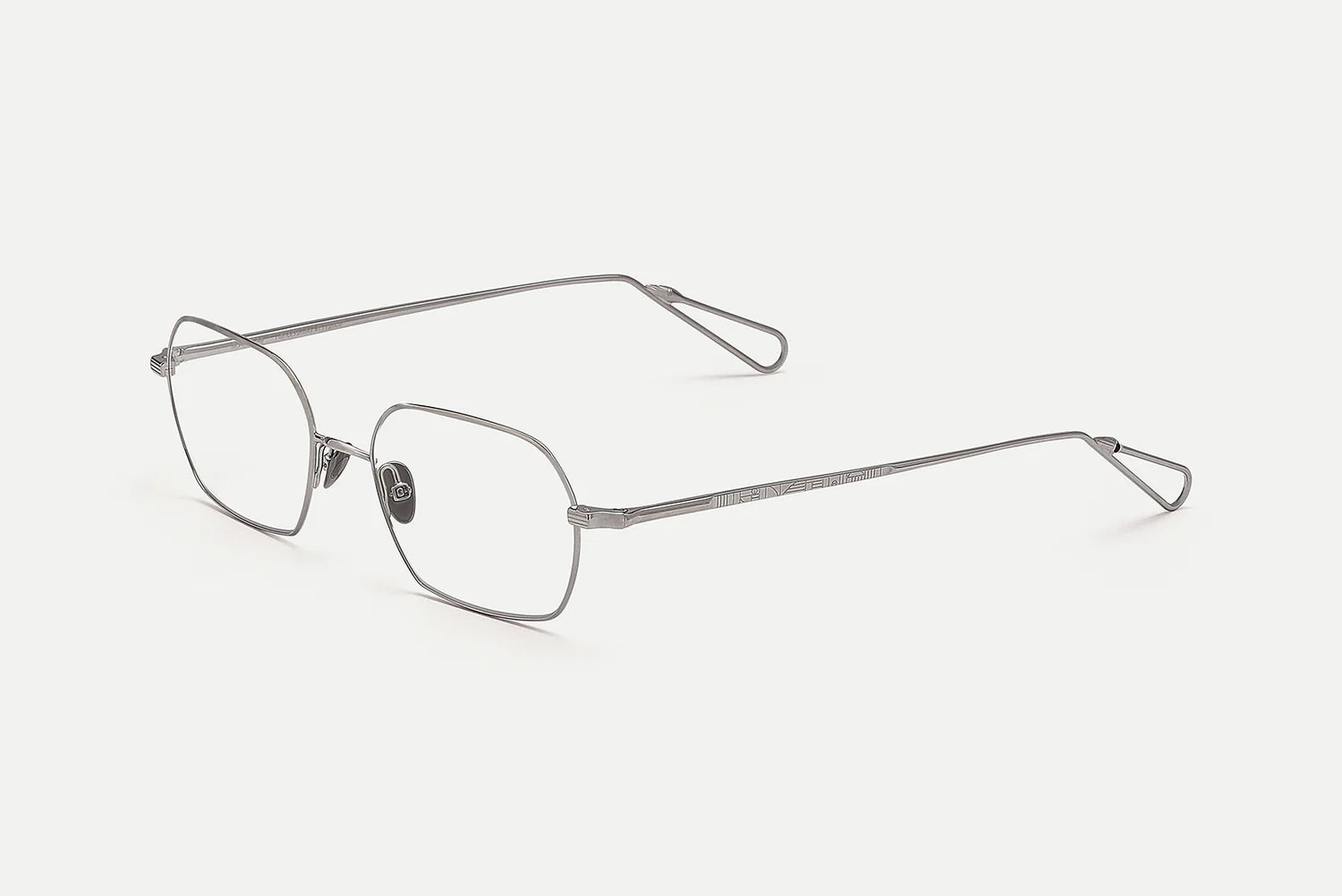 Laser-engraved filigree nose pads that play with Bauhaus shape, made of titanium to ensure non-reactive and hypoallergenic aspects