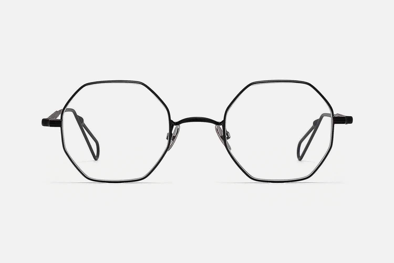Laser-engraved filigree nose pads that play with Bauhaus shape, made of titanium to ensure non-reactive and hypoallergenic aspects