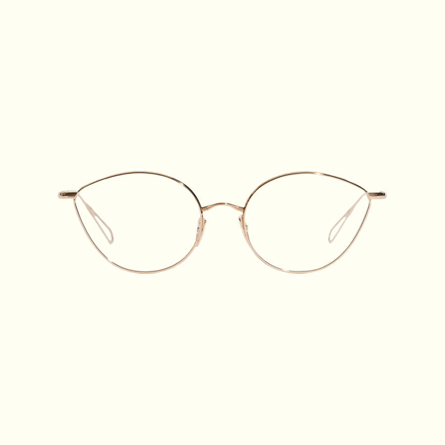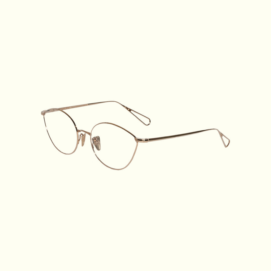 Constructed from beta titanium electroplated in 22k gold, filigreed Titanium nose pads, and signature temple tips.