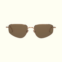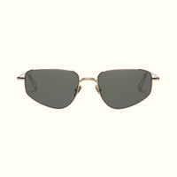 On a visit to the Musée de Quai Branly, Ahlem Manai-Platt was awed by the sophisticated abstractions in its collection of African sculptures. Quai Branly is her homage to the sleek shapes and elongations of that powerful artistic tradition. This expressive metal frame pairs an elegant concept with beveled rims and temples, for a chic statement sunglass that’s both fluid and refined.