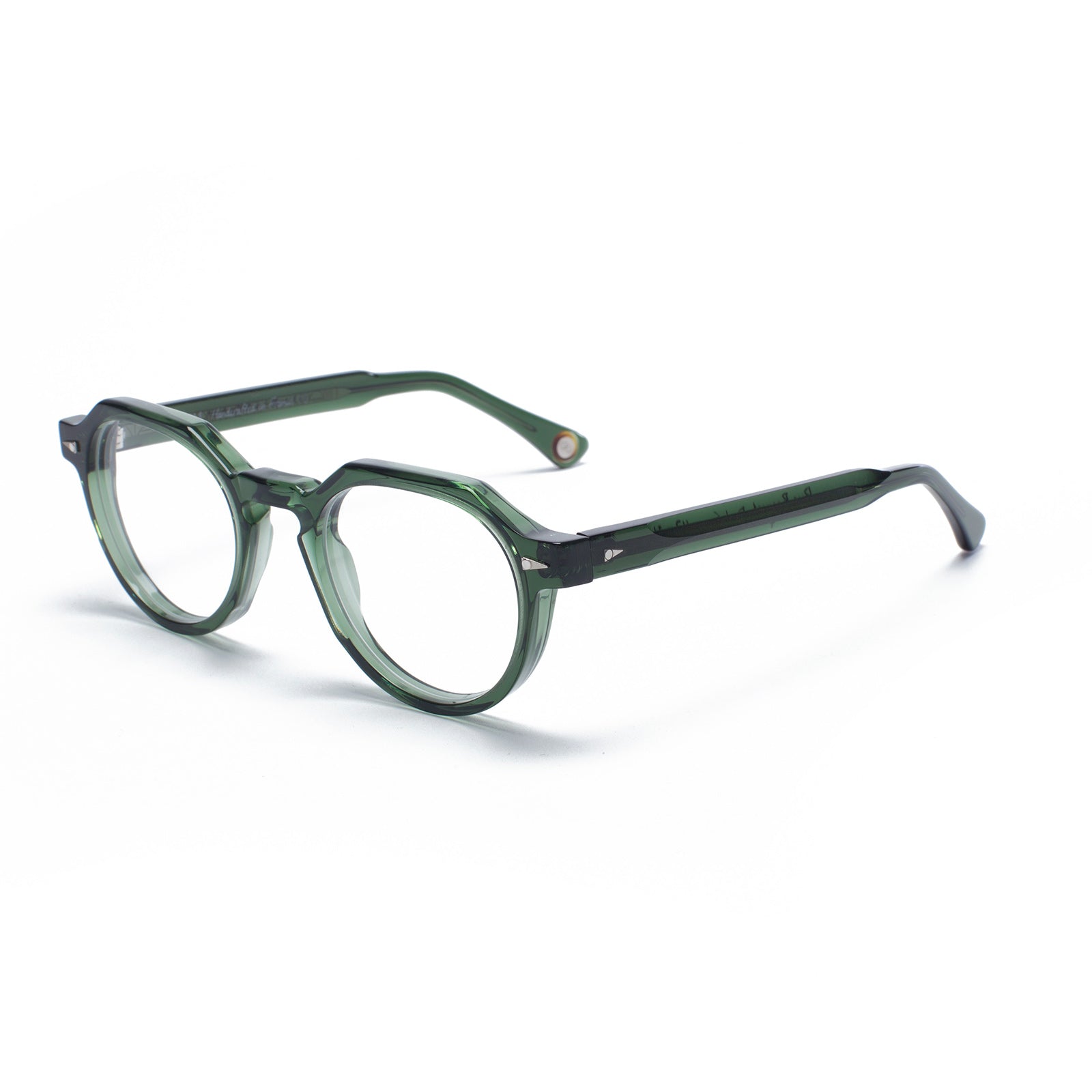 - Beveled temples with internal hinge and thread-lock screws