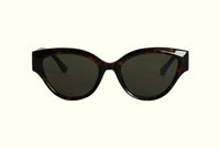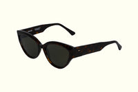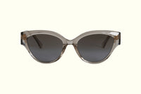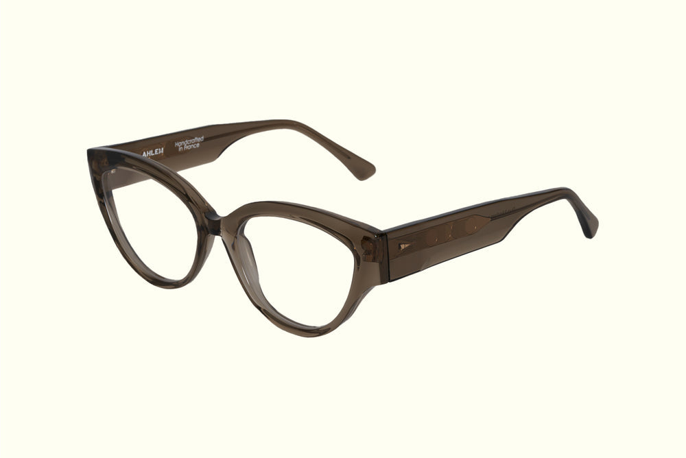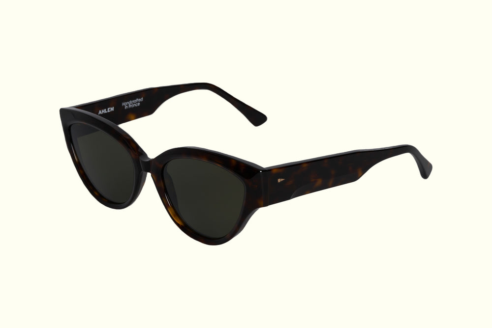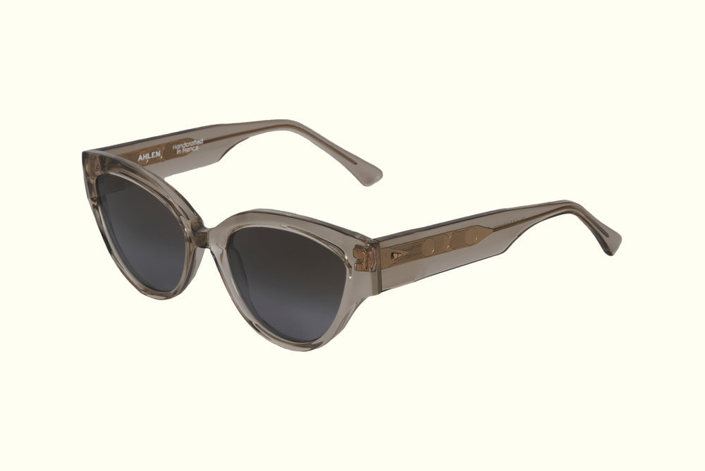 Rue Madame Sun is AHLEM’s softened take on a traditional cat-eye, with a flattering upswept shape offering beautiful lift and balance to the face. The oversized frame, a larger version of our Rue de Sofia style, incorporates layers of hand-beveling and diamond-cut facets for texture and dimension, as well as thick temples and a laser-engraved corewire with AHLEM’s signature geometric accents.