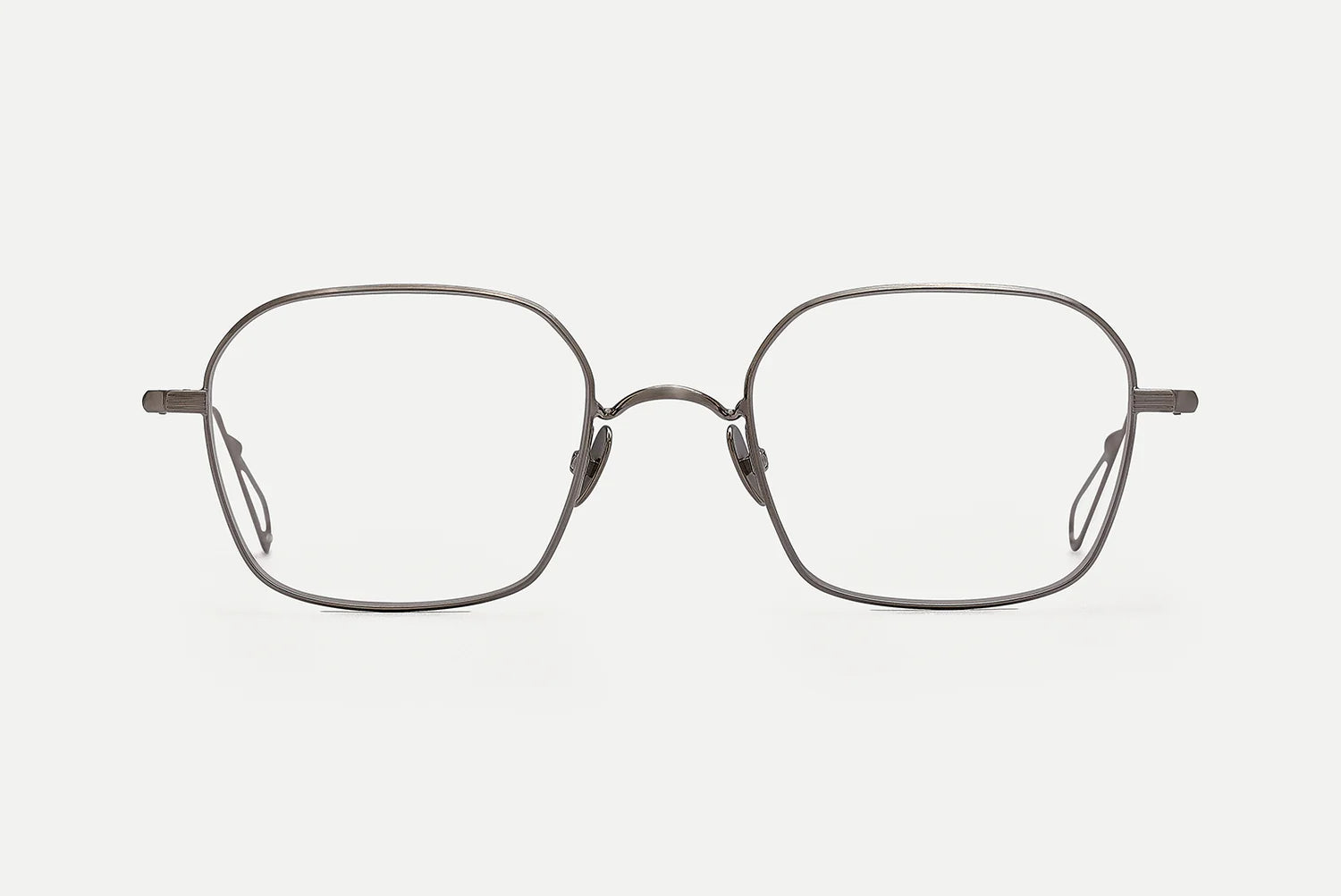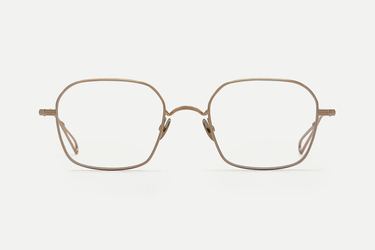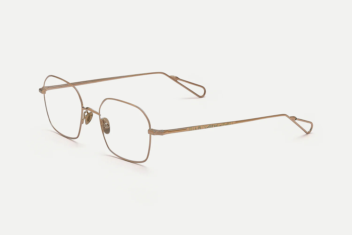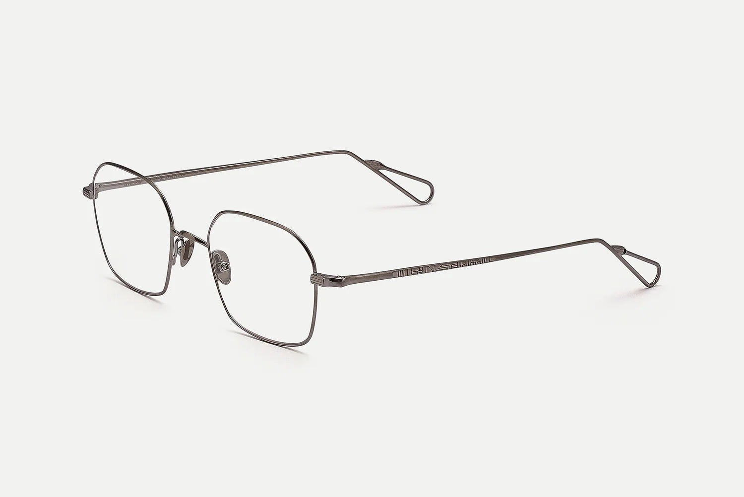 Laser-engraved filigree nose pads that play with Bauhaus shape, made of titanium to ensure non-reactive and hypoallergenic aspects