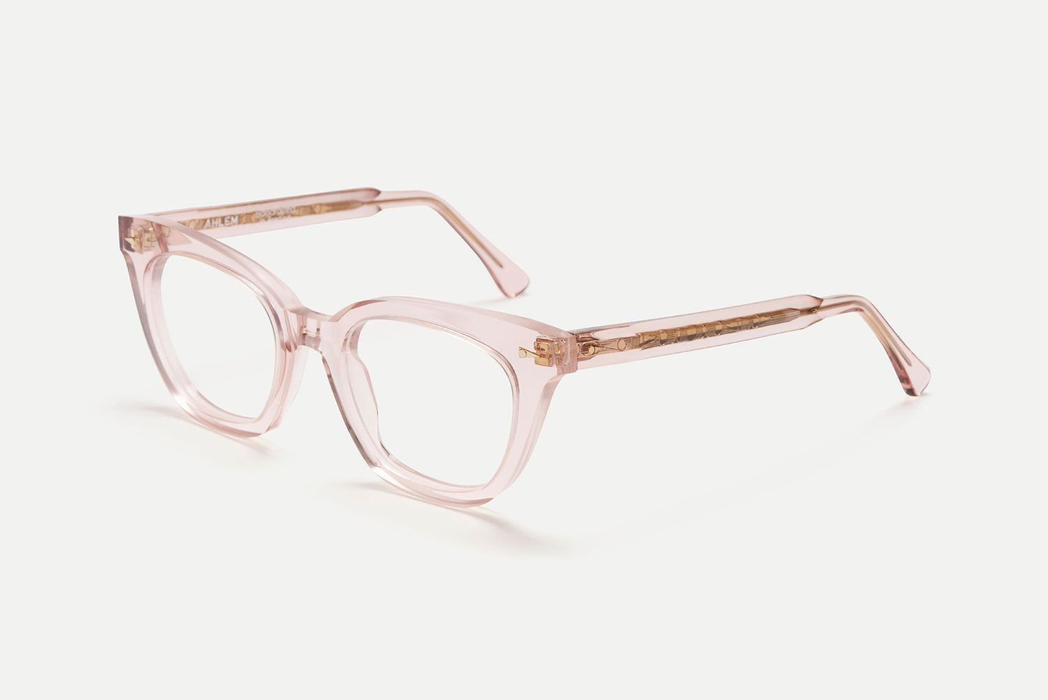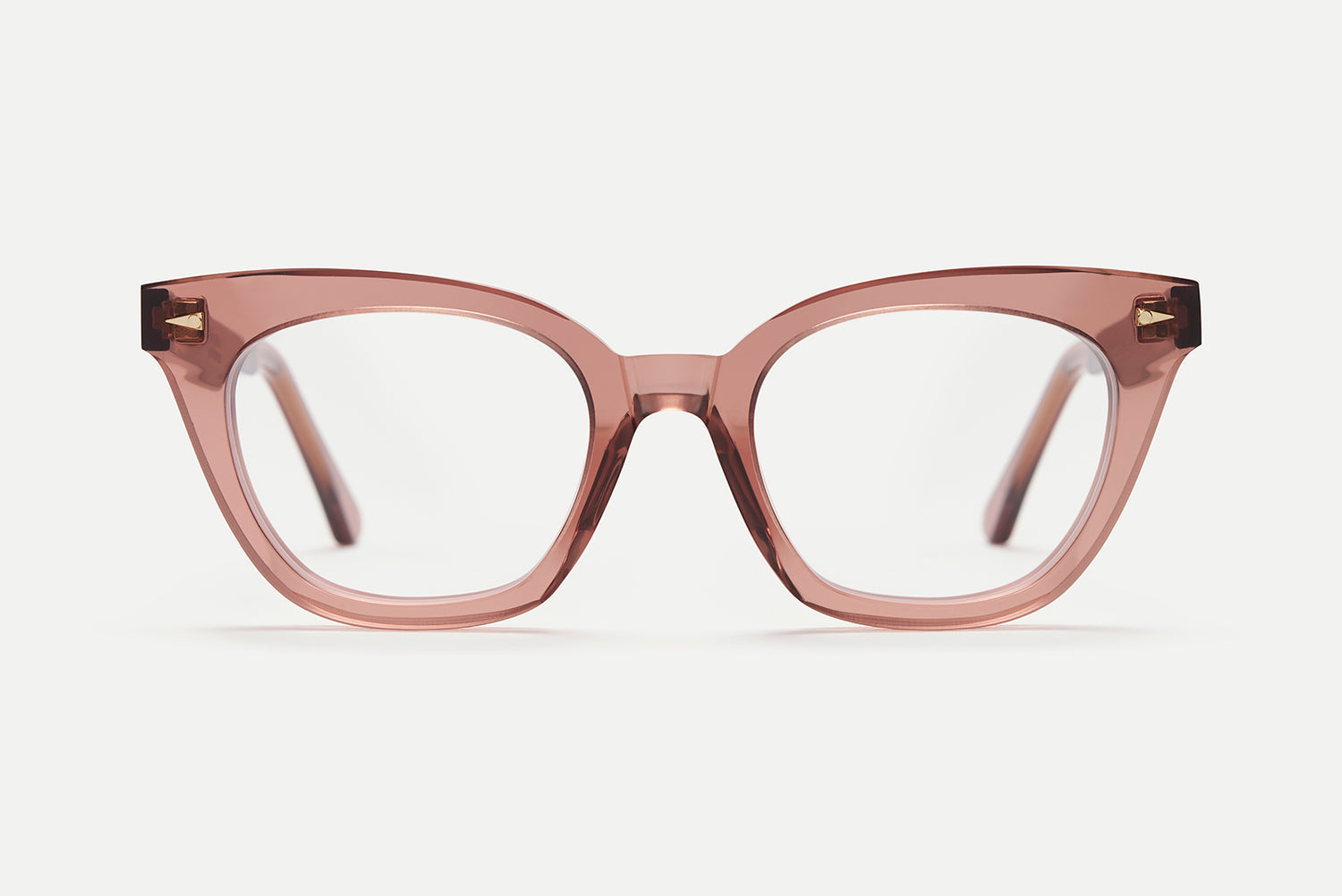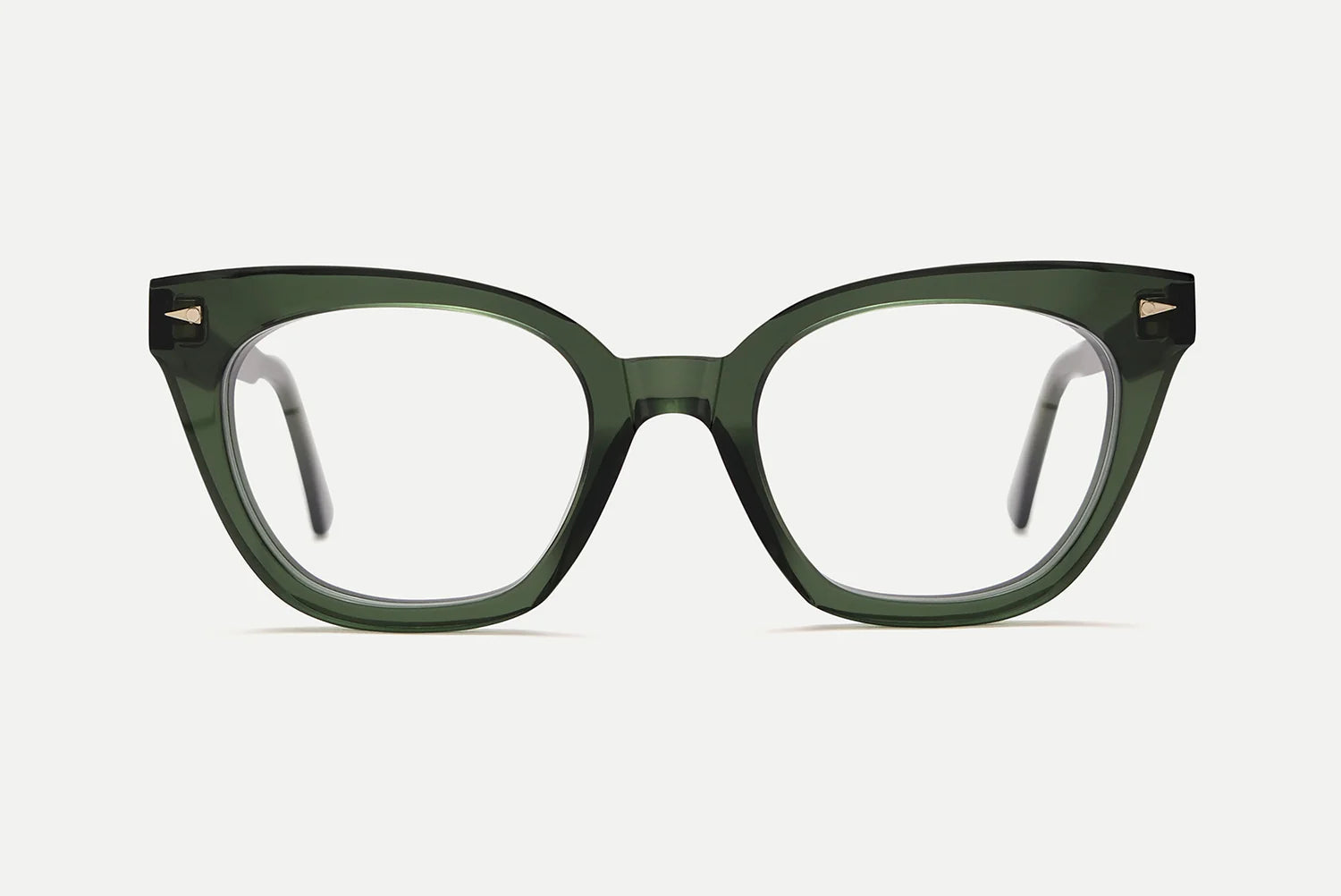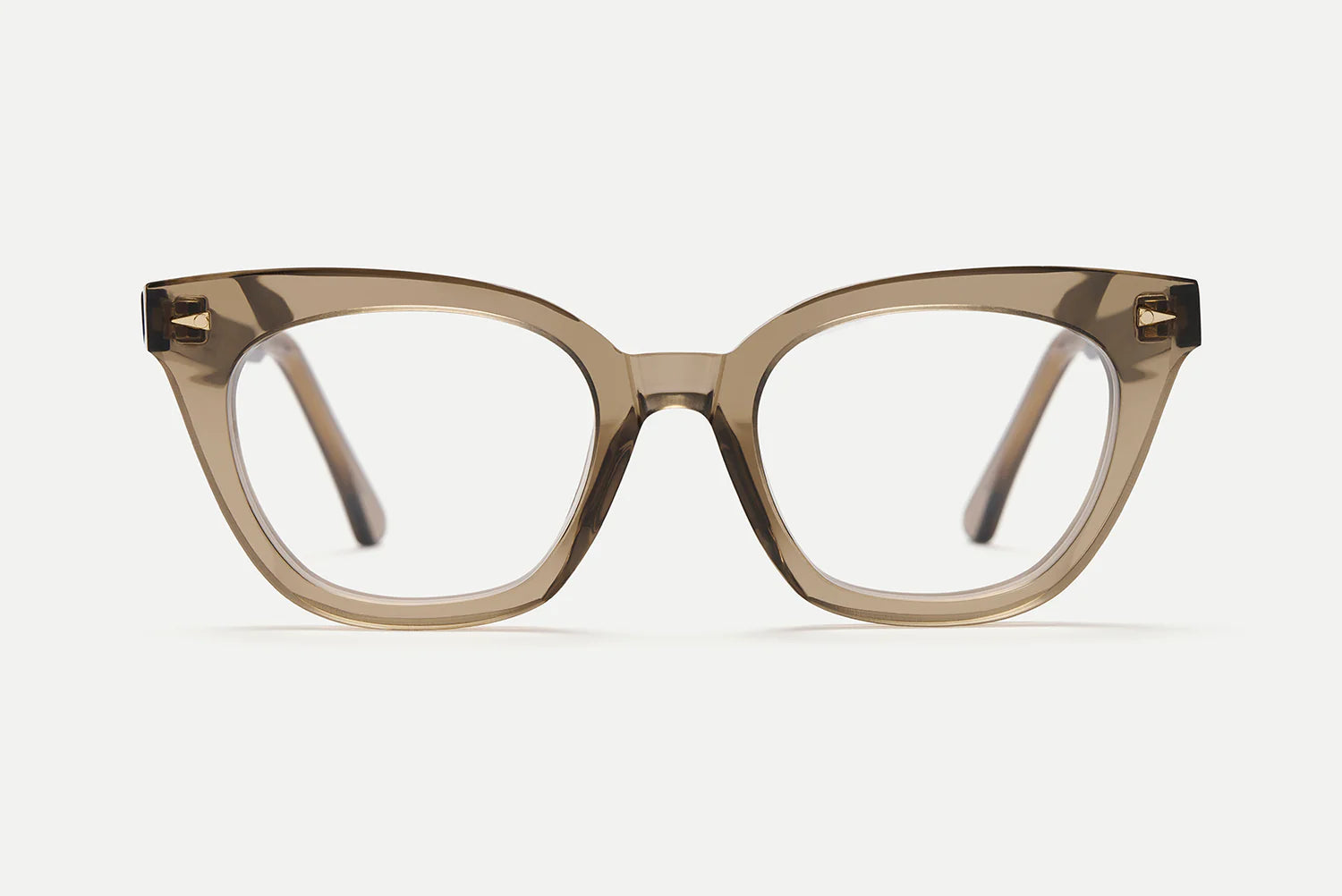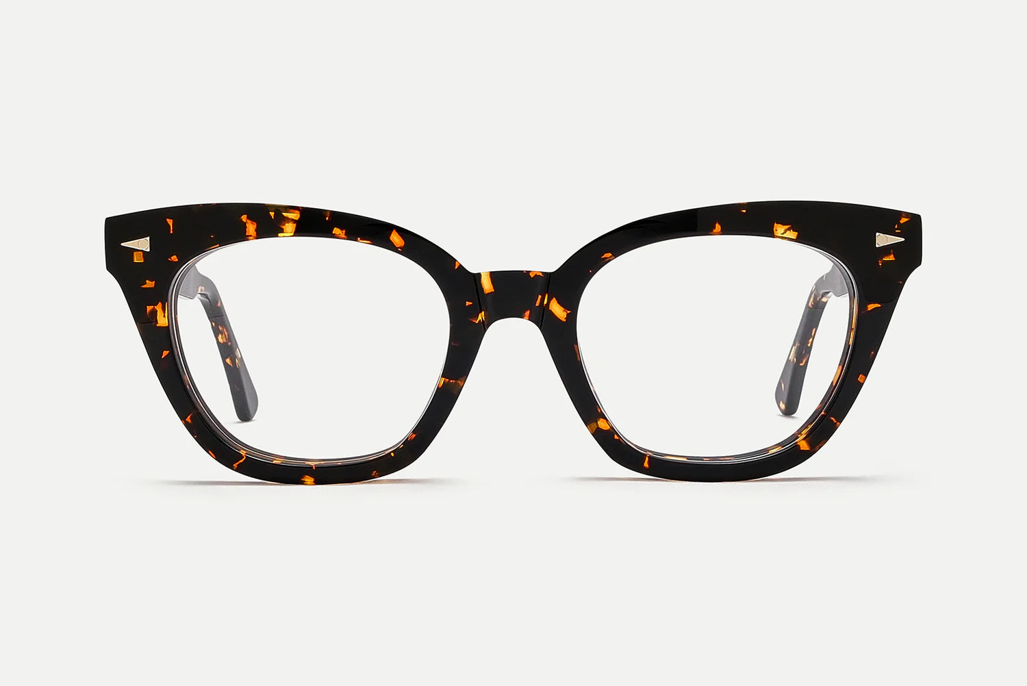 Electroplated 22k gold hinges, custom design temple core, beveled temples, and signature geometric accents.