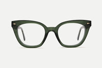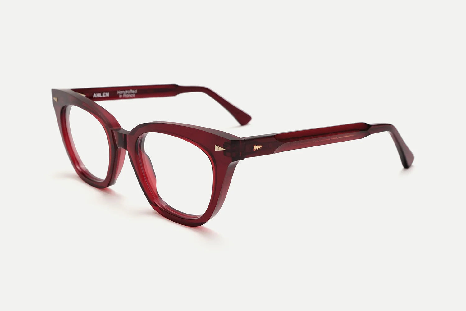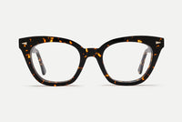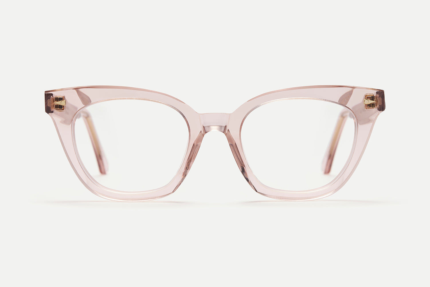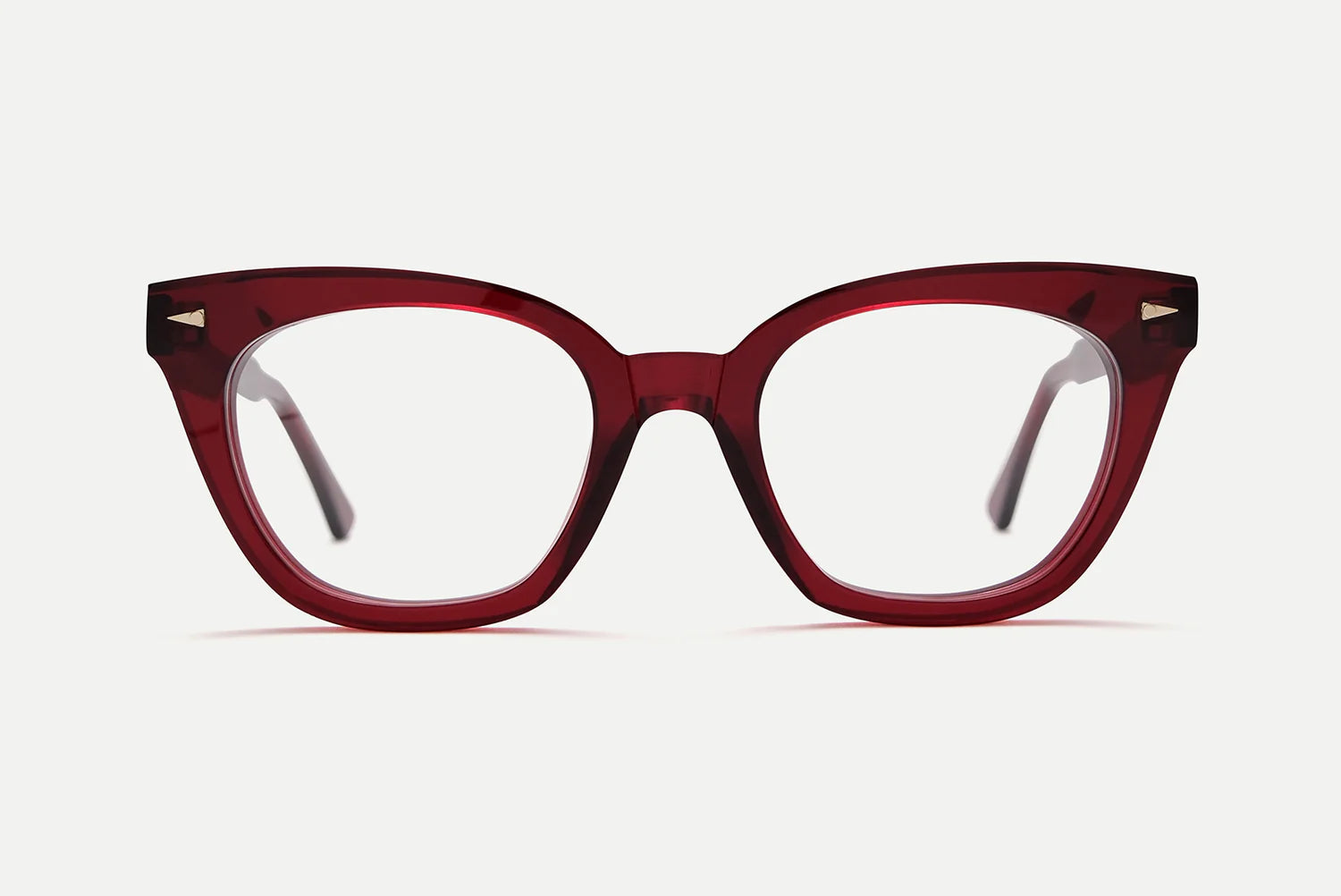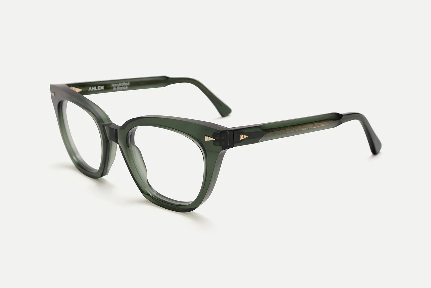 Electroplated 22k gold hinges, custom design temple core, beveled temples, and signature geometric accents.
