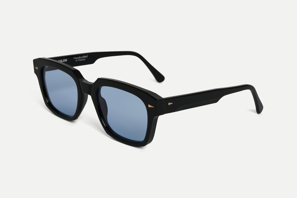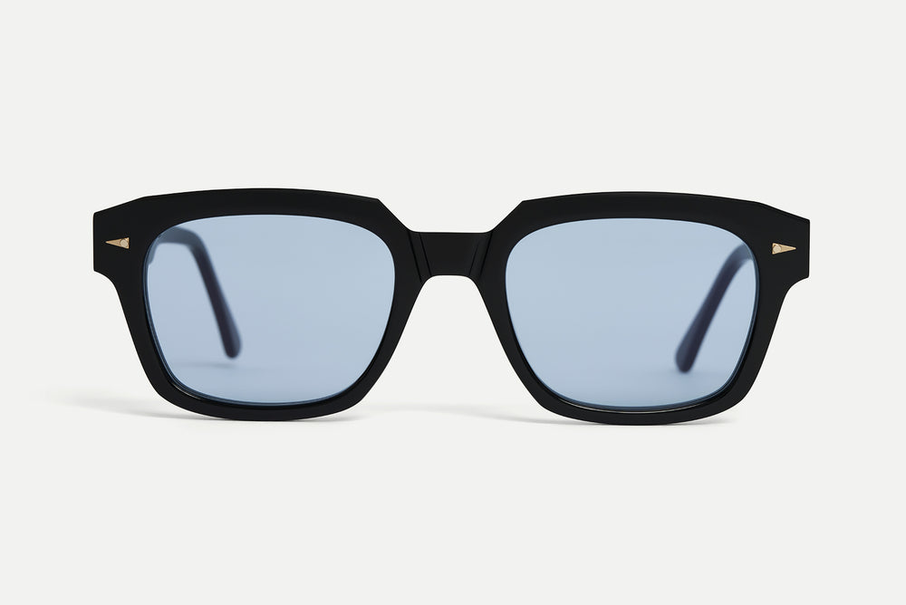 Electroplated 22k gold hinges, custom design temple core, beveled temples, and signature geometric accents.