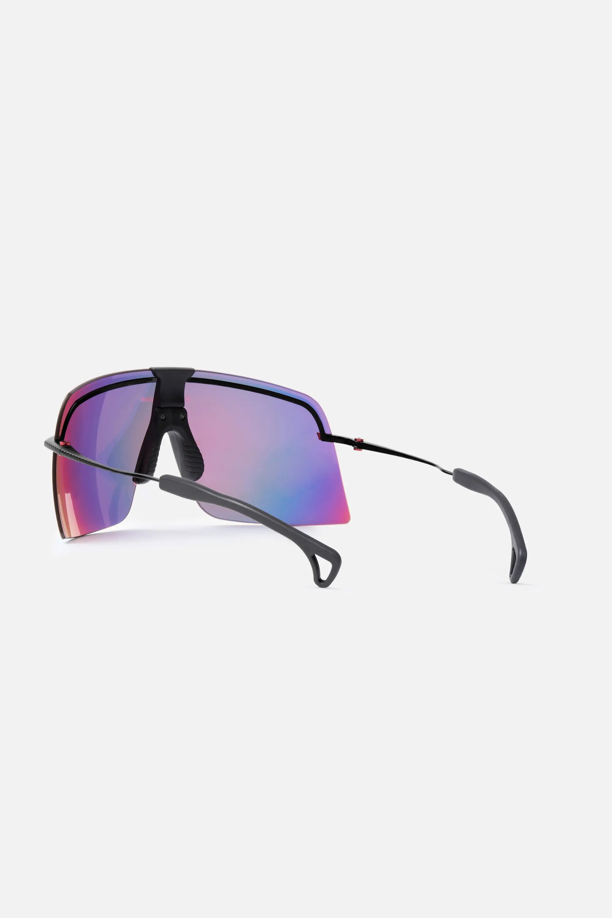 The Yusuke Alpine Blade Ti is a six base blade style proprietary sunglass system featuring a frame composed entirely of lightweight and durable aerospace grade titanium. The frame features custom anodized titanium hardware, hypoallergenic rubber nose pads and temple tips for a fully customizable fit, and utilize our signature D+ therapeutic grade lenses, constructed from a proprietary form of shatterproof polycarbonate. The lens shaping draws inspiration from early alpine and explorer eyewear where the lens acted as a protective shield for the eyes and face. The lens interiors are treated with both anti-reflective and oleophobic coatings for holistic eye protection and water and oil repellency.