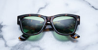MATERIAL: 10MM BLOCK ACETATE FRAME, CUSTOM DOUBLE LAMINATED ACETATE TEMPLES FT. PRECIOUS METAL HARDWARE