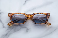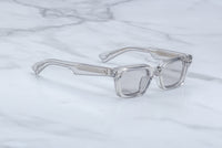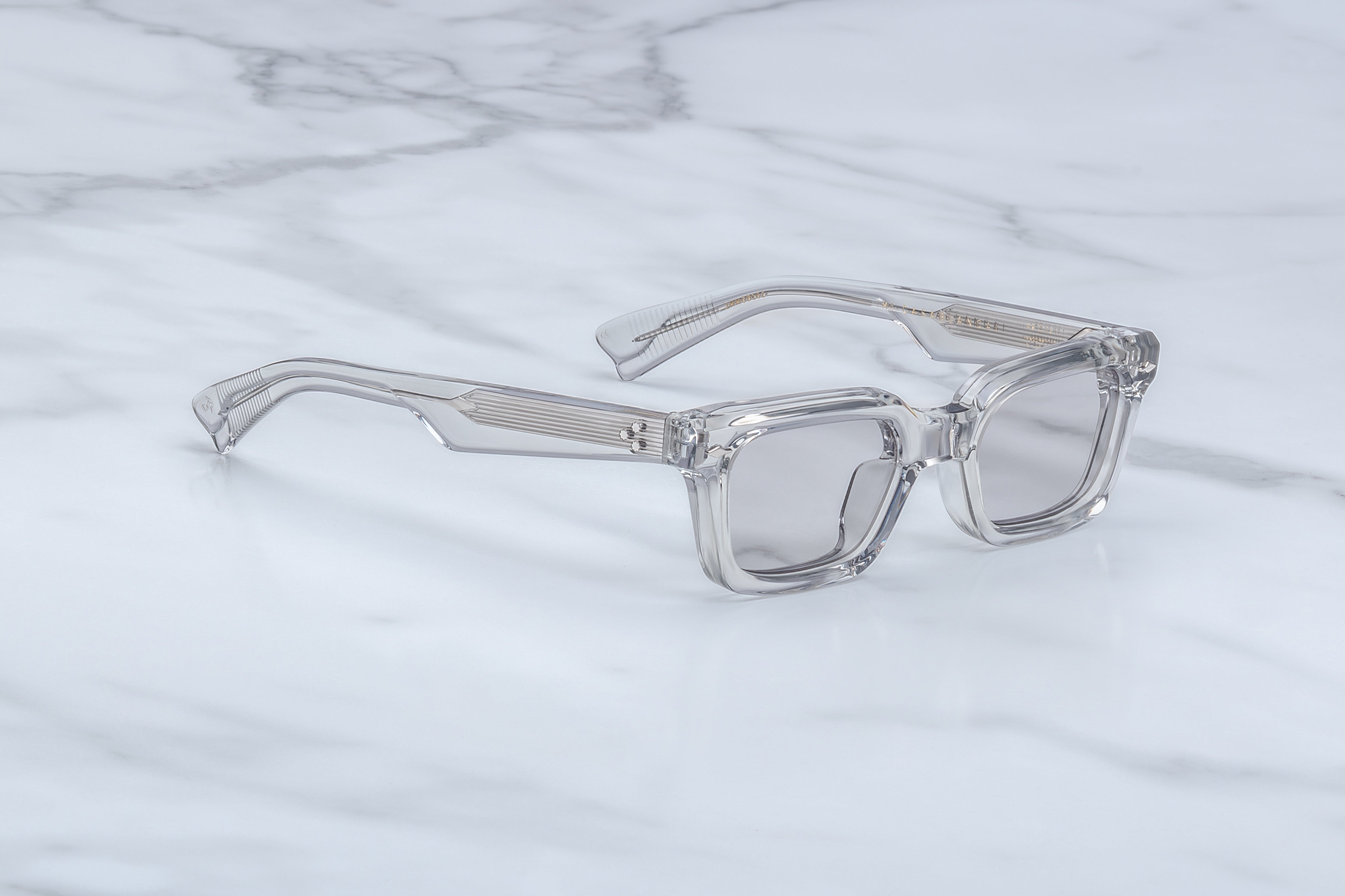 Compact and slender spectacles with a small, rectangular lens shape, clever brow line with thin bridge, double-laminated temples, and our signature polished metal hardware.