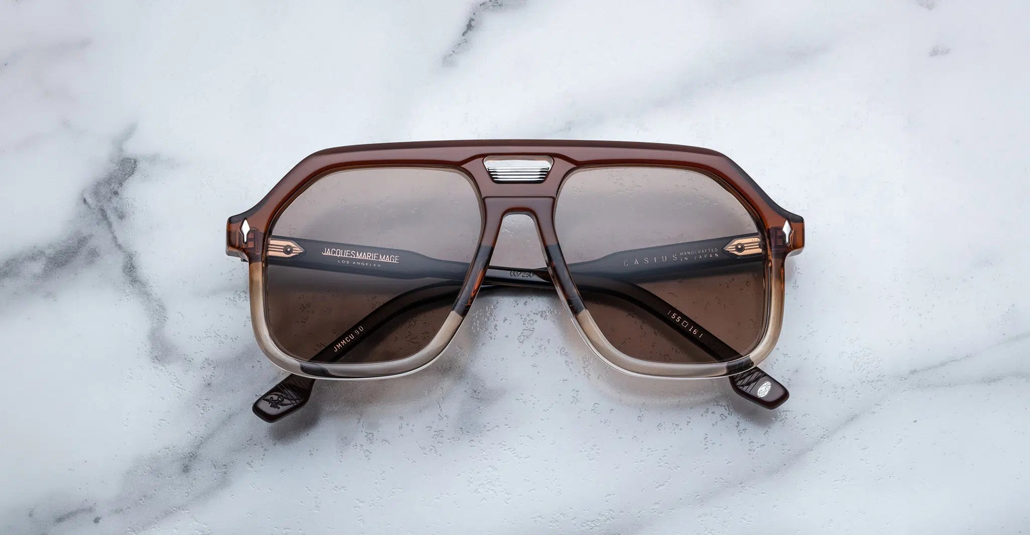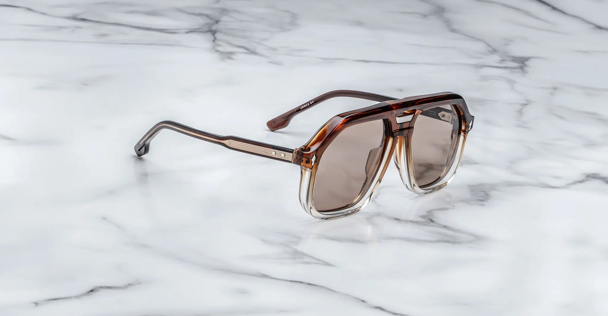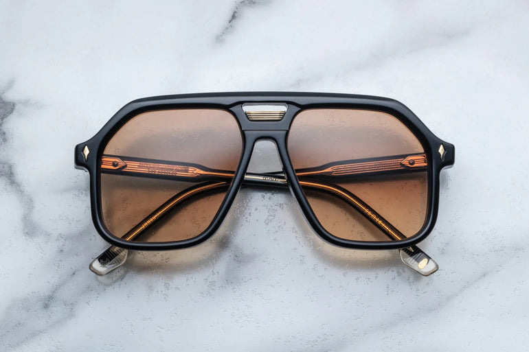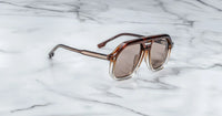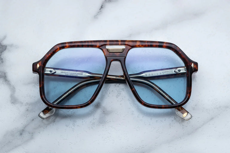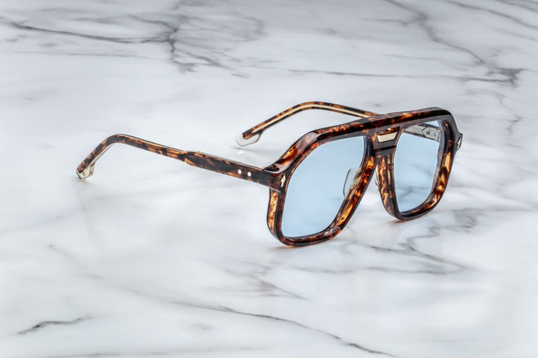 10MM CURED CELLULOSE ACETATE FRAME WITH CUSTOM DOUBLE LAMINATED ACETATE TEMPLES FEATURING PRECIOUS METAL HARDWARE