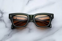 MATERIAL: 10MM POLISHED, CURED CELLULOSE ACETATE FRAME CUSTOM DOUBLE LAMINATED ACETATE TEMPLES FT. PRECIOUS METAL HARDWARE