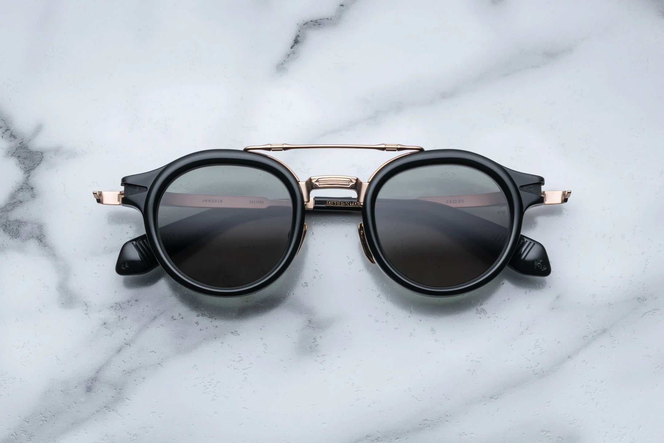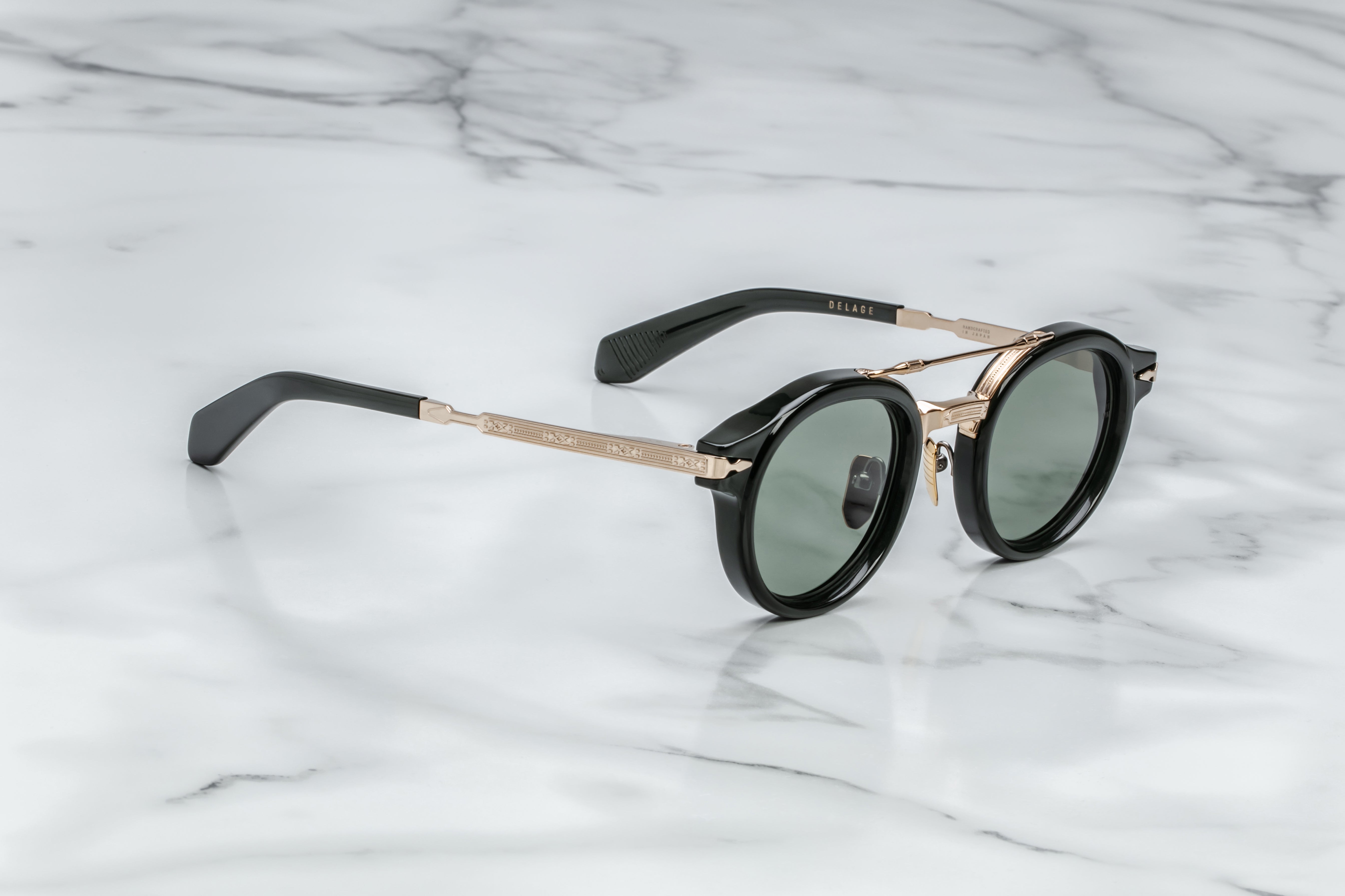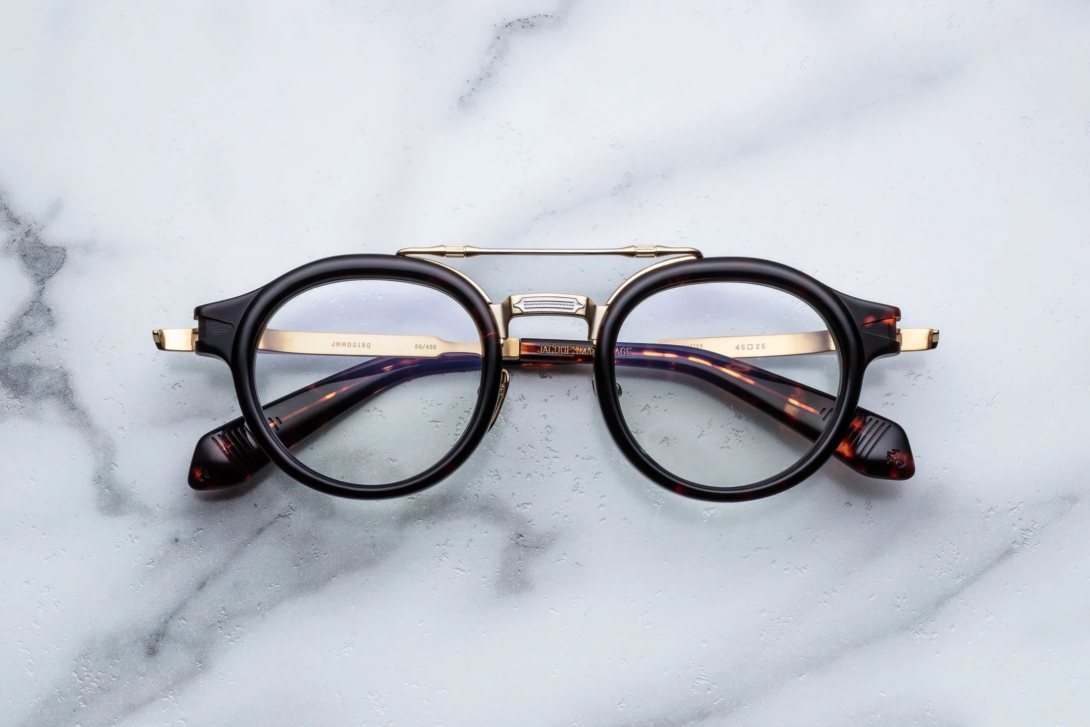 The fluid lines and fine embellishments of Art Deco find their full realization in these ‘50s-inspired spectacles made for the modern city, a bold acetate frame with a distinct titanium brow bar that speaks to these self-assured spectacle’s subtle old-world sensibility.