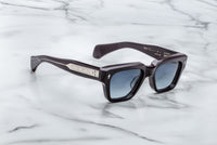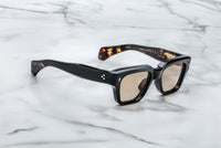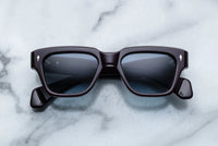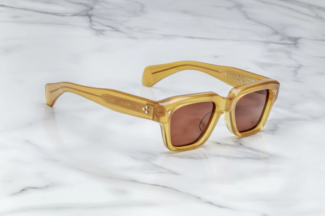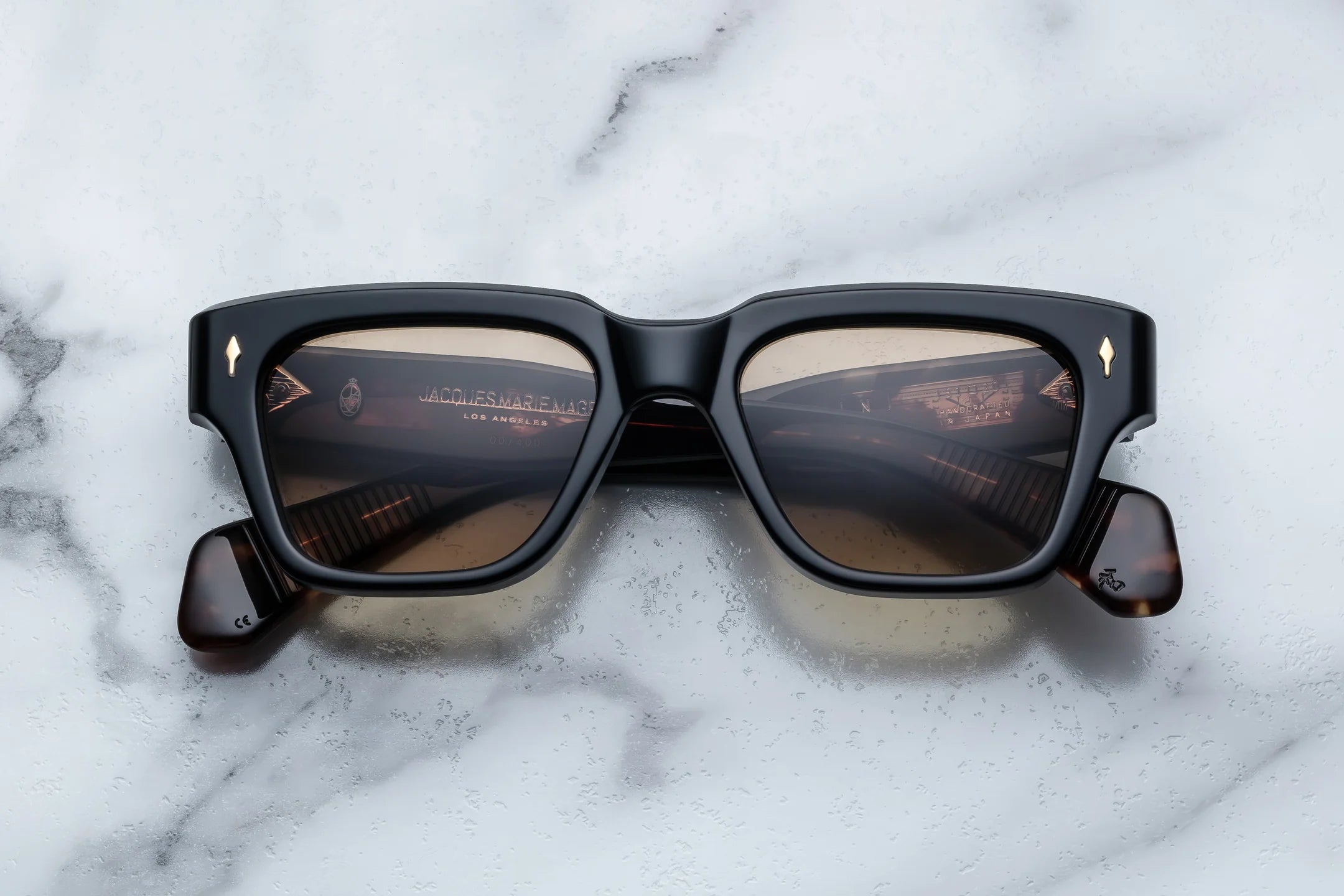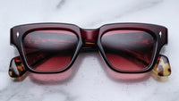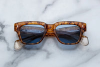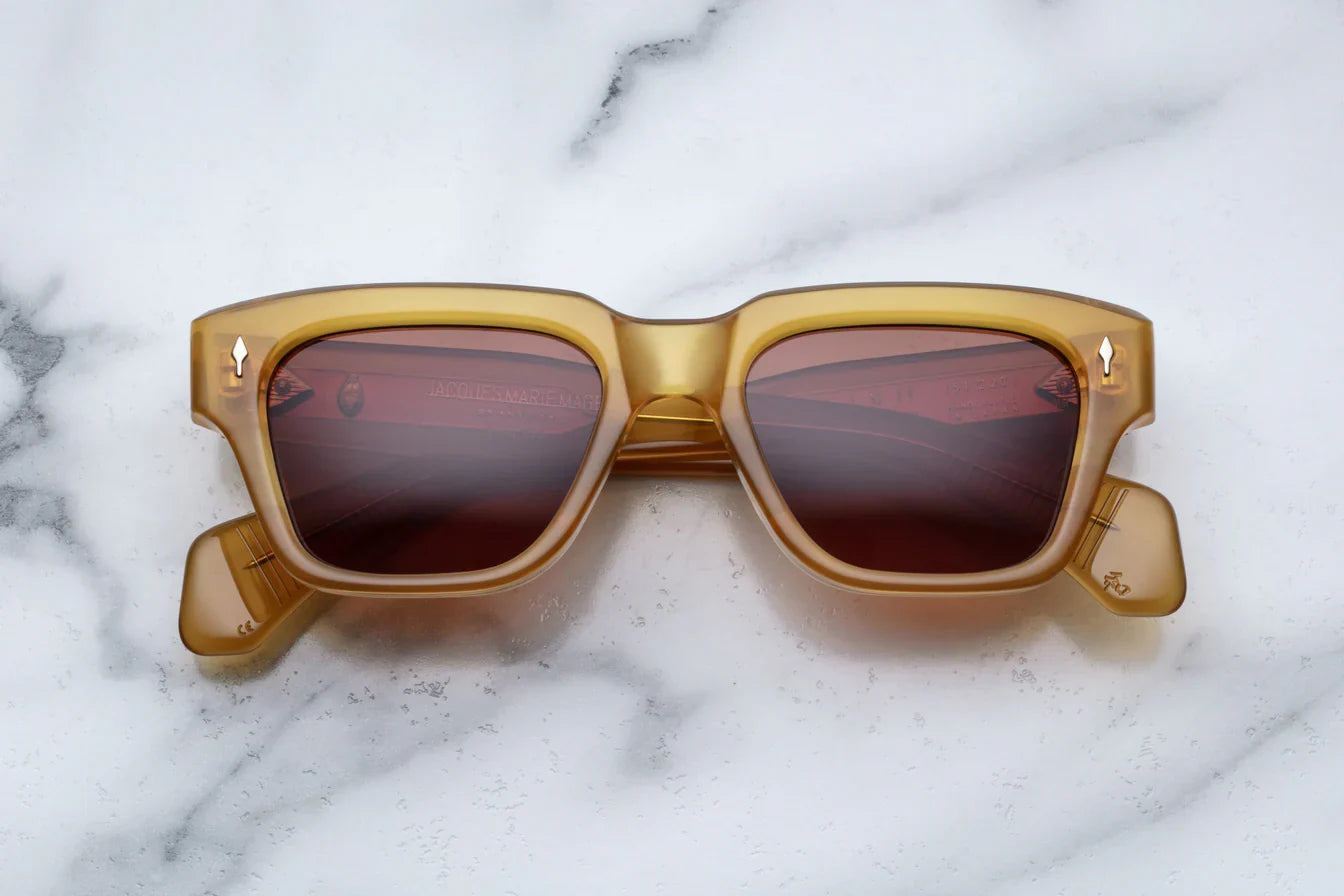 MATERIAL: 10MM POLISHED, CURED CELLULOSE ACETATE FRAME WITH CUSTOM DOUBLE LAMINATED ACETATE TEMPLES FT. PRECIOUS METAL HARDWARE