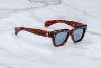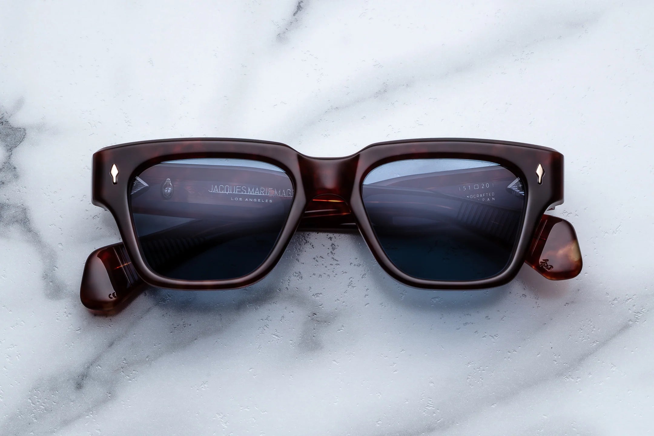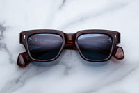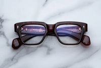 MATERIAL: 10MM POLISHED, CURED CELLULOSE ACETATE FRAME WITH CUSTOM DOUBLE LAMINATED ACETATE TEMPLES FT. PRECIOUS METAL HARDWARE