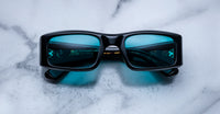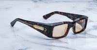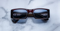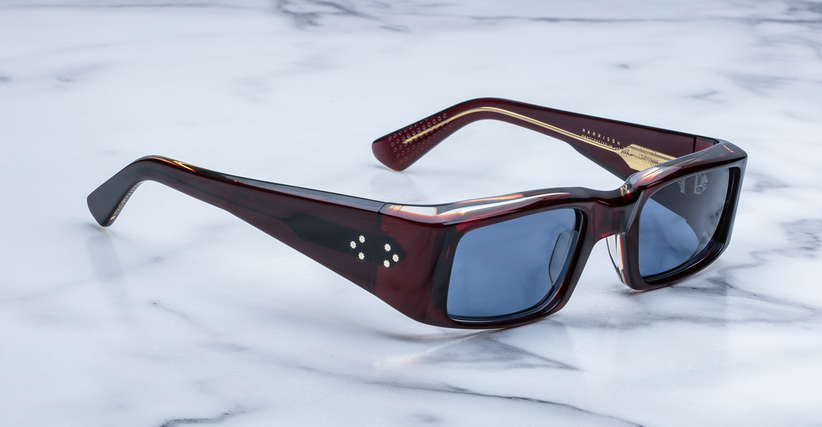 MATERIAL: 10MM BLOCK ACETATE FRAME, CUSTOM DOUBLE LAMINATED ACETATE TEMPLES FT. PRECIOUS METAL HARDWARE
