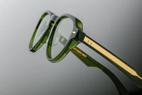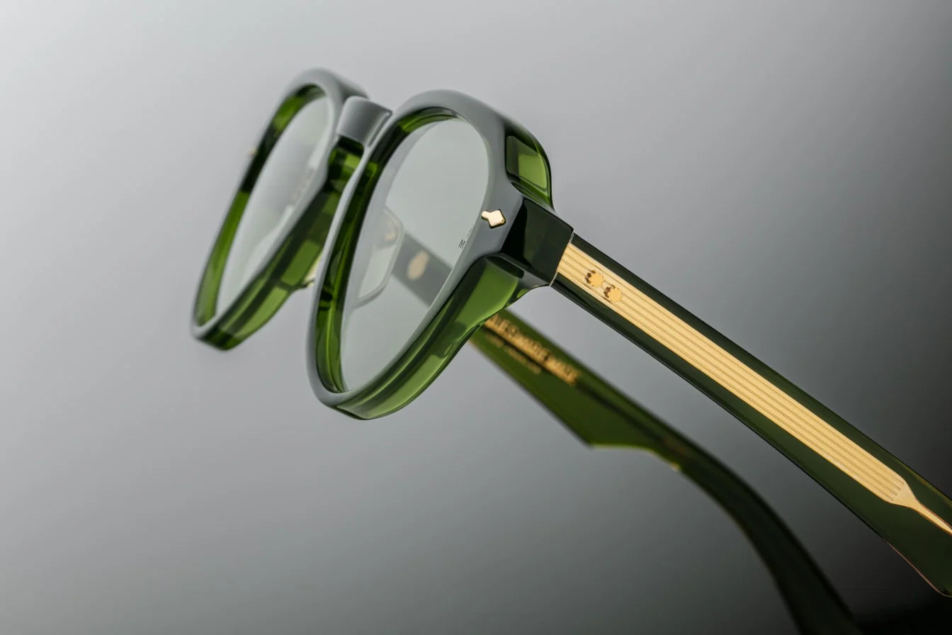 MATERIAL: 10MM CELLULOSE ACETATE FRAME, CUSTOM DOUBLE LAMINATED ACETATE TEMPLES FT. PRECIOUS METAL HARDWARE