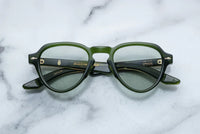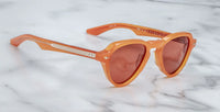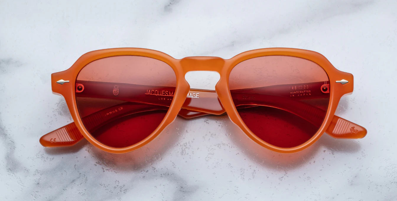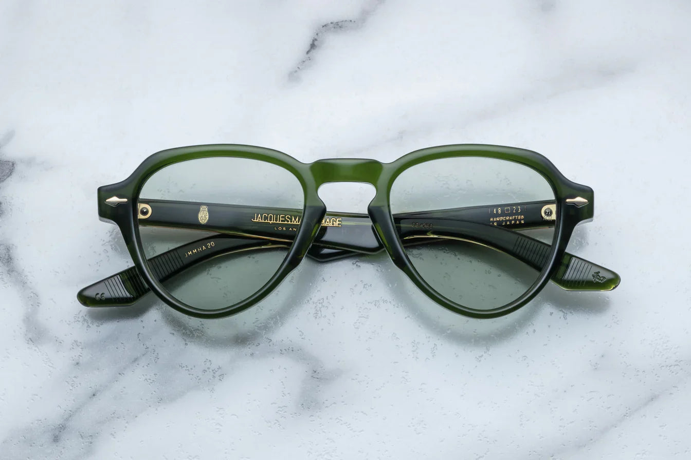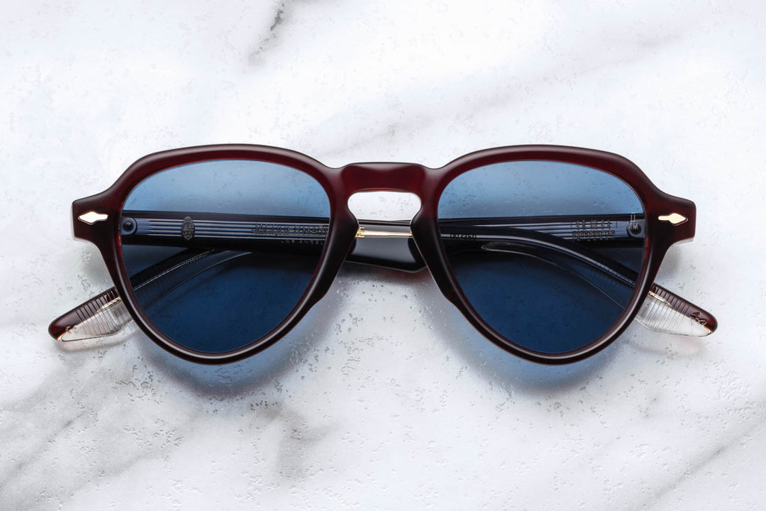 The classic JMM aviator returns, a reboot of an original style from JMM’s debut season. Sleek and balanced, with an exaggerated teardrop lens shape and exposed wire core temples with signature embellishments.