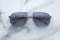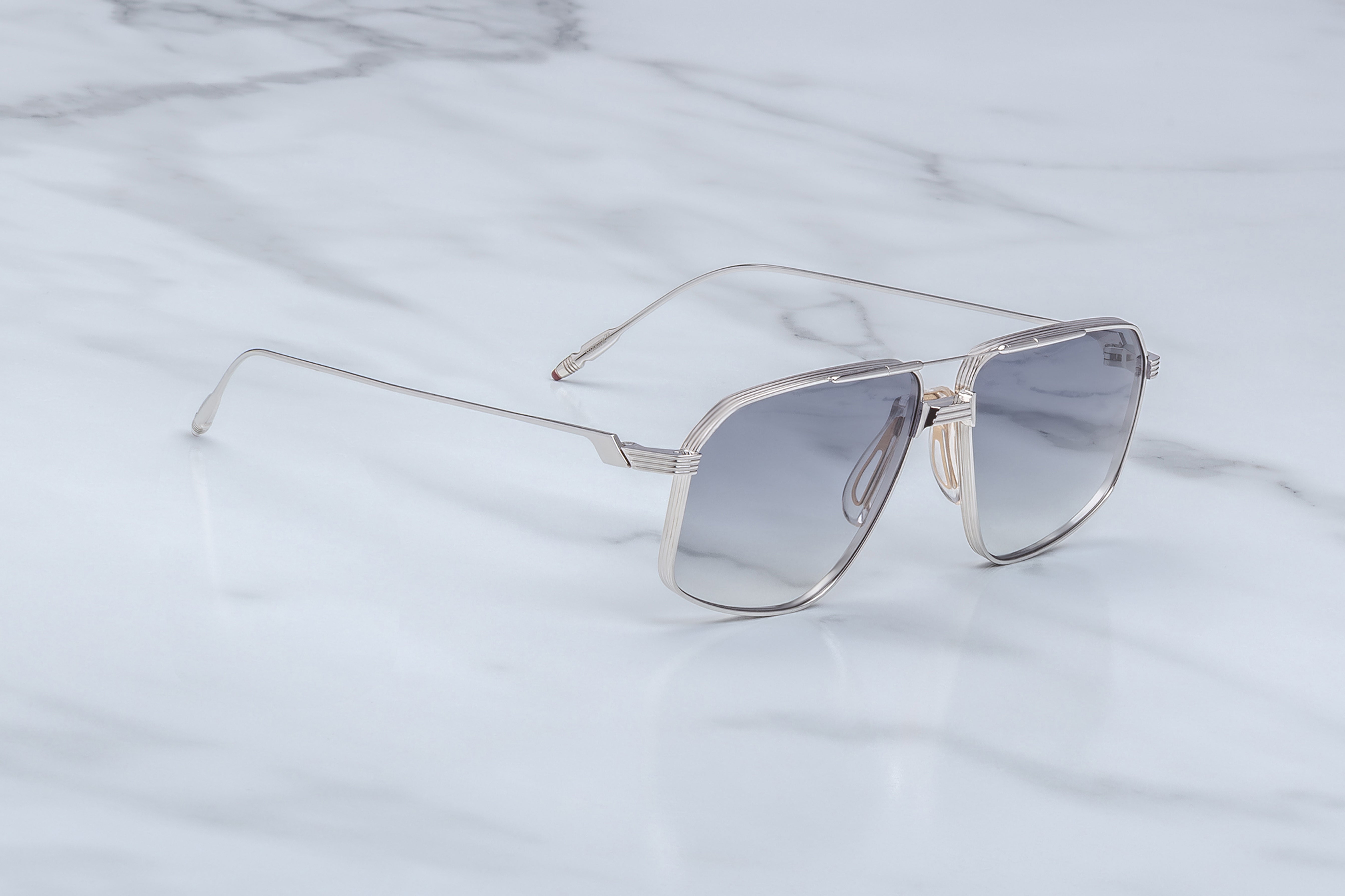 Oversized, late-'70s-inspired titanium aviators, featuring sculptural Art Deco-inspired bridge and brow bar, monoblock hinges, and our signature hand-painted epoxy temple tips.