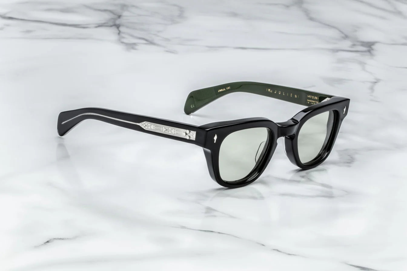 Consider these sophisticated ‘50s-inspired spectacles as modern remnants of post-war Paris, sleek heirlooms of those smoky, jazz filled cafes of Saint Germain des Prés where poets, philosophers, musicians, actors, singers, and students all happily comingled, unwittingly creating a boisterous epicenter of cultural nonconformity. Moderate Wellington shape with keyhole bridge; a “jazz silhouette” for smaller faces.