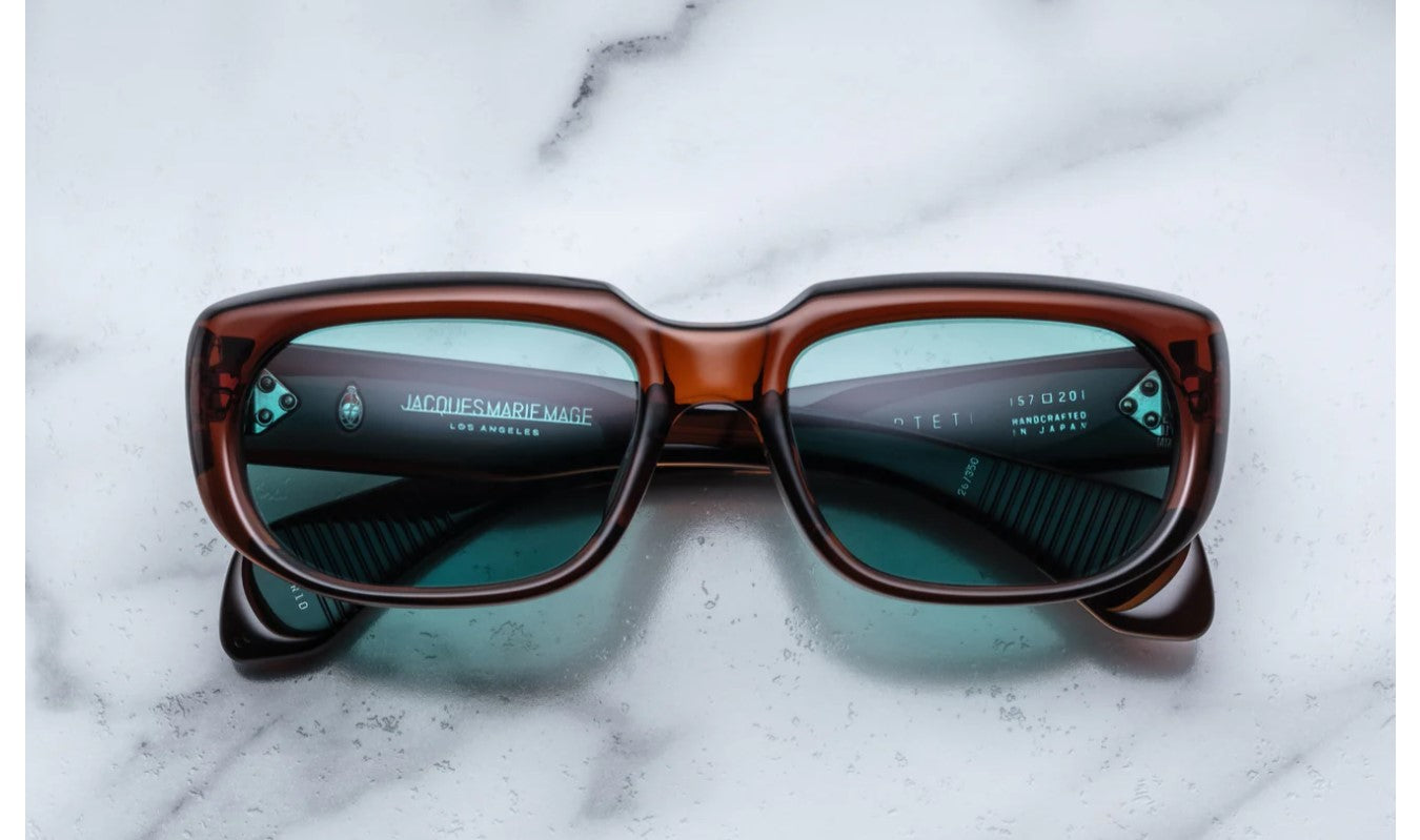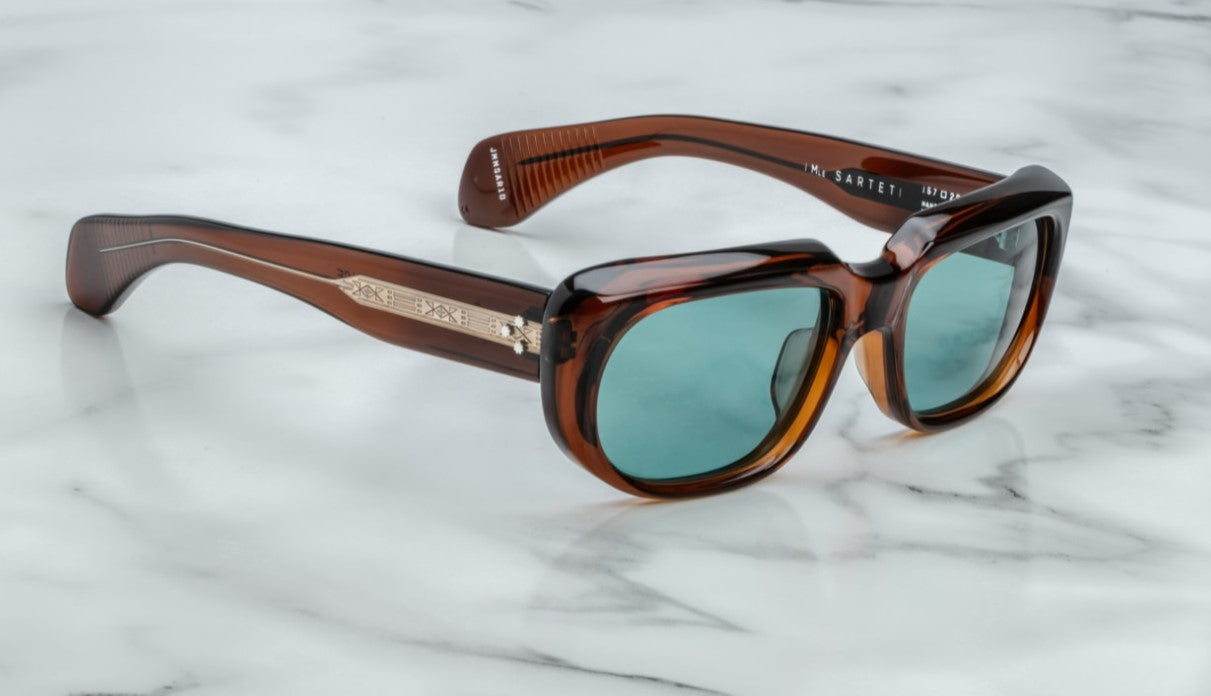 10MM CURED CELLULOSE ACETATE FRAME WITH CUSTOM DOUBLE LAMINATED ACETATE TEMPLES FEATURING PRECIOUS METAL HARDWARE