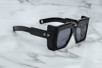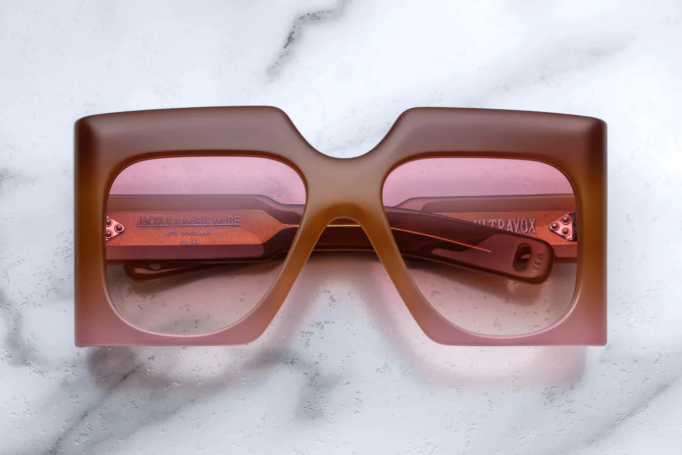 MATERIAL: 7MM CURED CELLULOSE ACETATE FRAME WITH CUSTOM ACETATE TEMPLES FEATURING PRECIOUS METAL HARDWARE