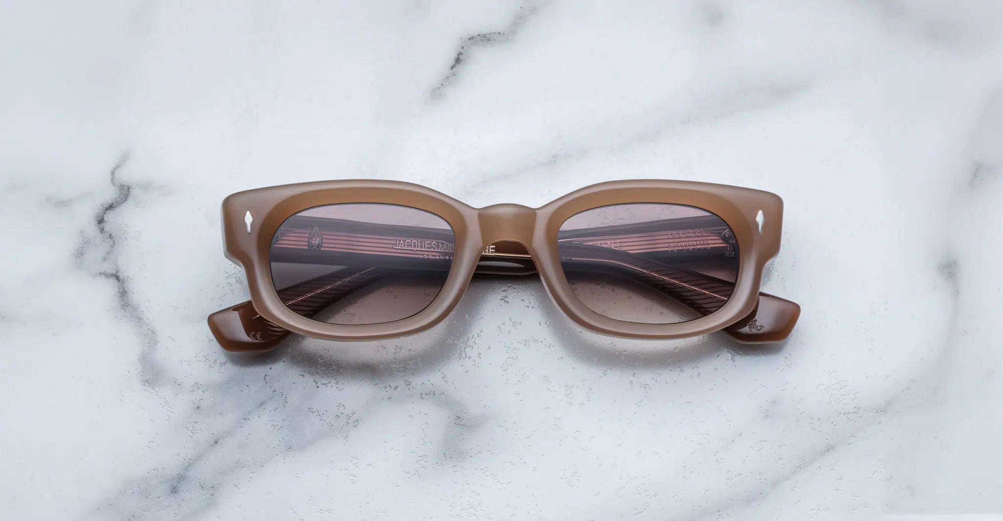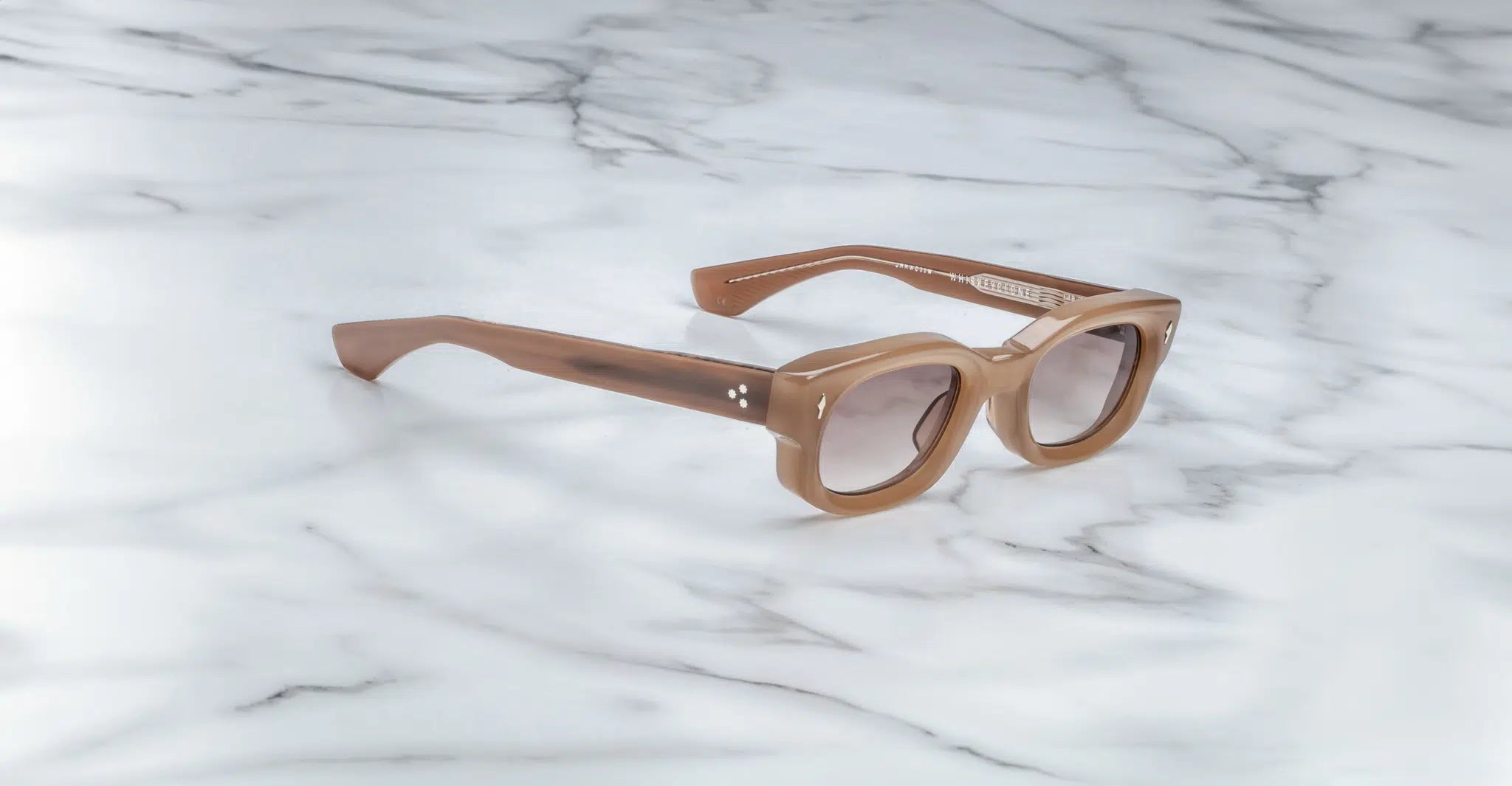 MATERIAL: 10MM POLISHED CELLULOSE ACETATE FRAME CUSTOM DOUBLE LAMINATED ACETATE TEMPLES FT. PRECIOUS METAL HARDWARE