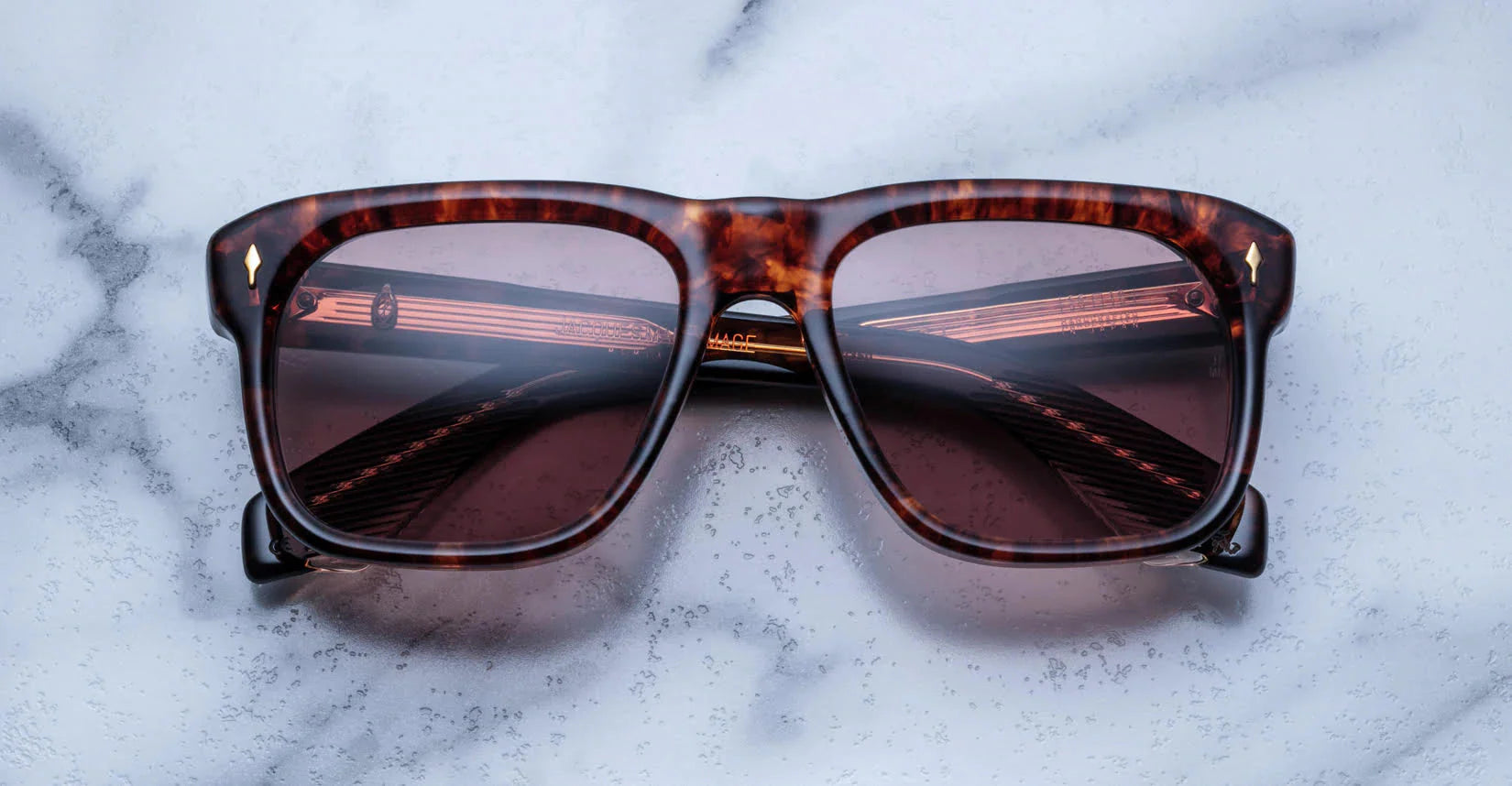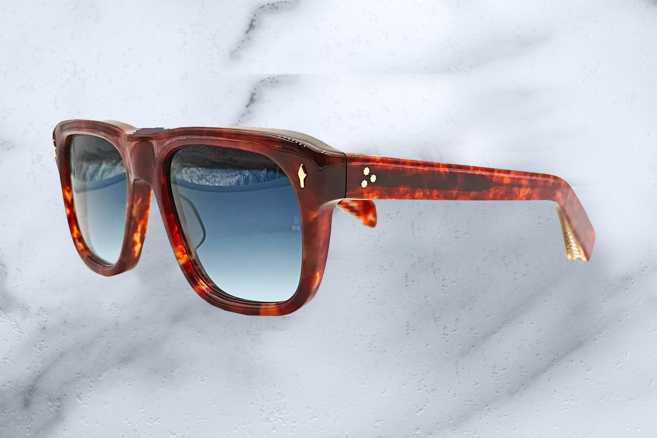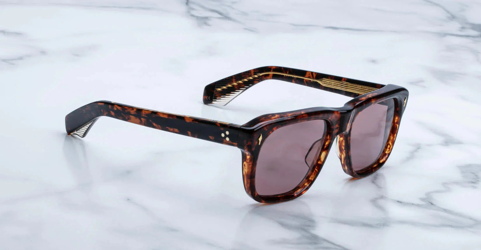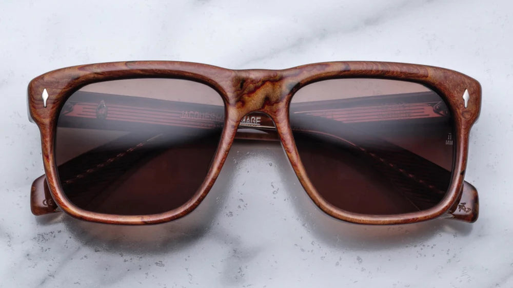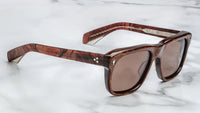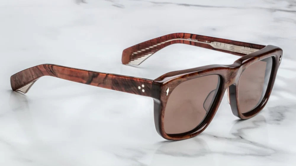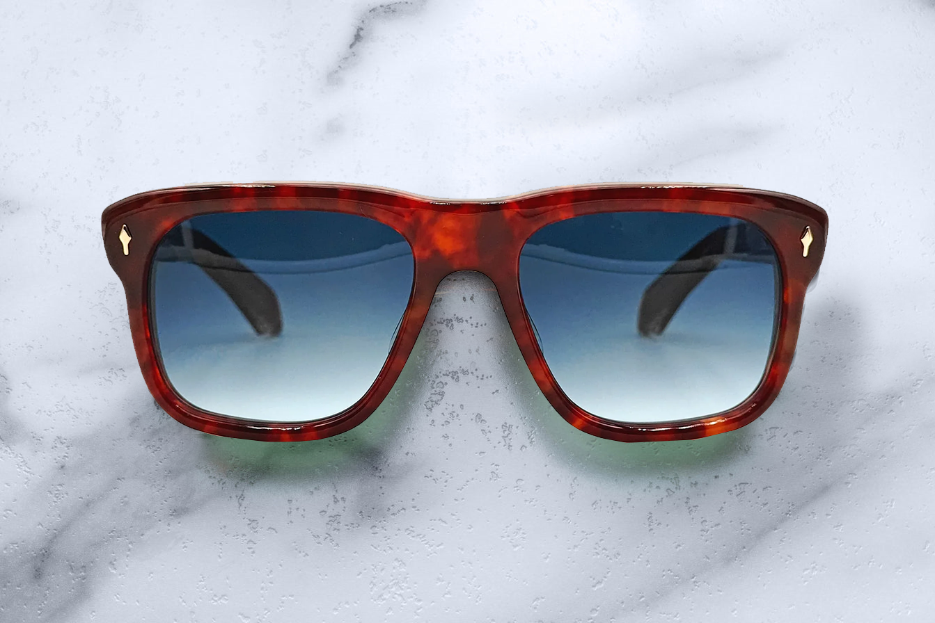 10MM CURED CELLULOSE ACETATE FRAME WITH CUSTOM ACETATE TEMPLES FEATURING PRECIOUS METAL HARDWARE