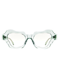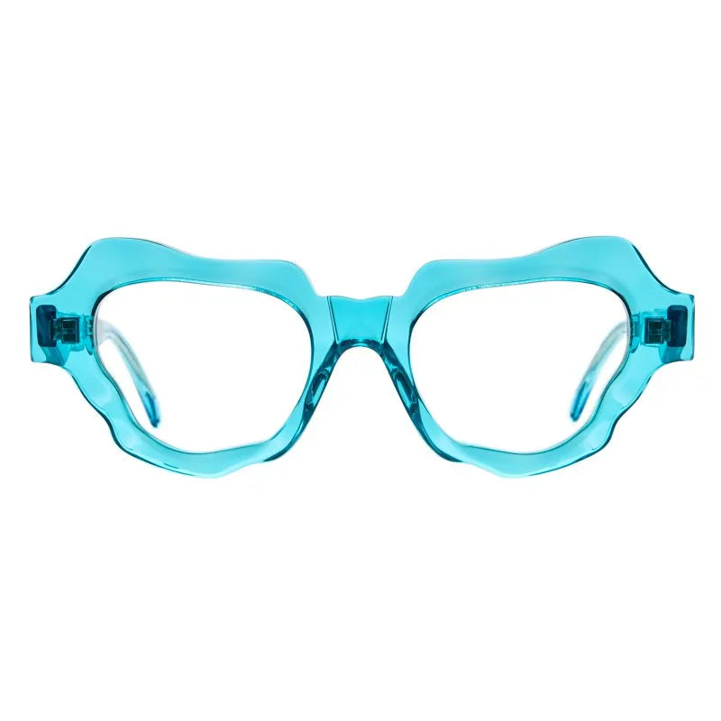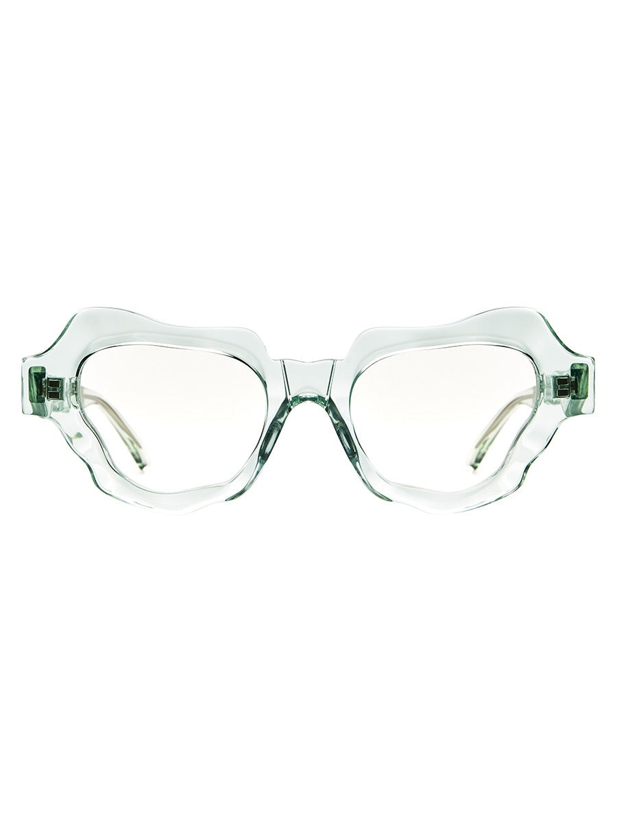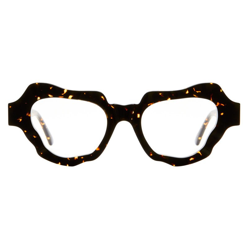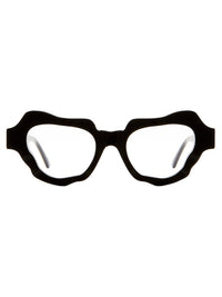 KUBORAUM Mask G2 eyeglasses for men and women, featuring round frames with undulating details. The glasses are part of the KUBORAUM G-series, a trilogy of undulating acetate frames embracing fluid morphic textures.
