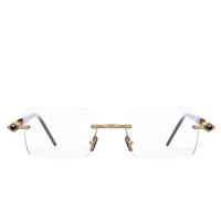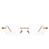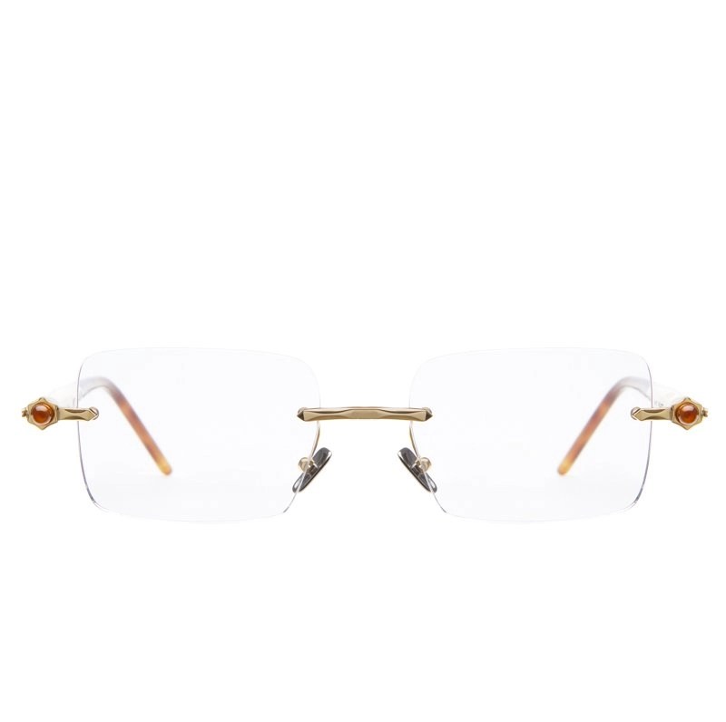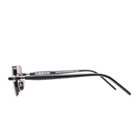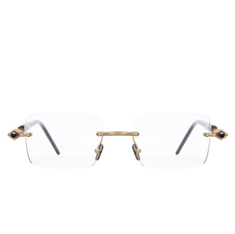 Rounded rectangular drill mounted lenses between sculptural, refined tubular temples. Discerning yet discrete.