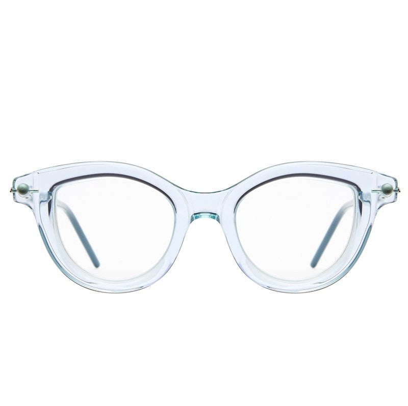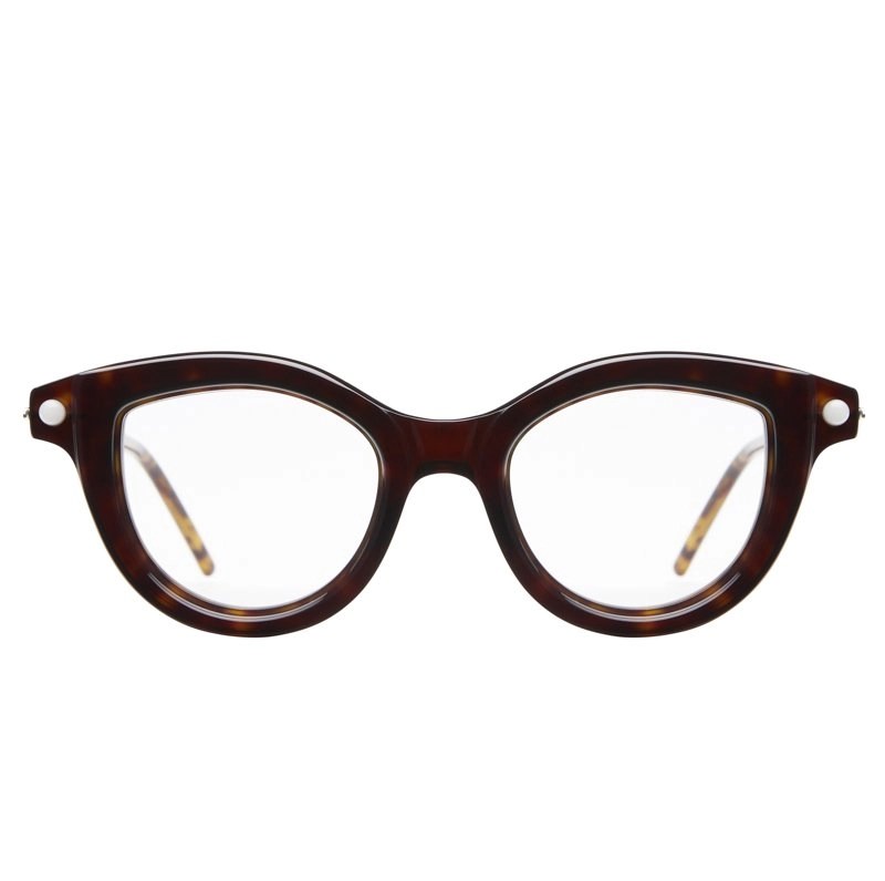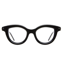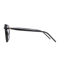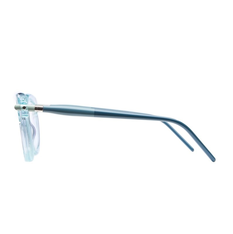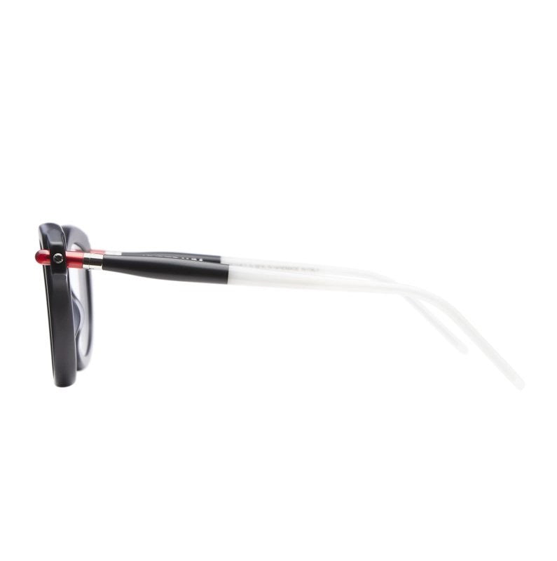 Turned tubular temple extending through the front and a sleek hinge maintain a continuous line. The frame front is subtly shadowboxed for more depth and form. Refinement is this frames final form and expression.
