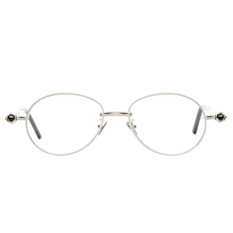 Form fitted teared with coined edge and cylindrical tapered temple finial and all. A little deco a lot of class. Formal or business appropriate. Tailored fit on most face shapes.