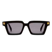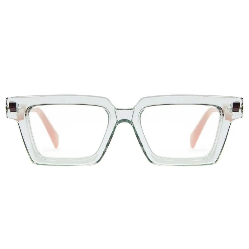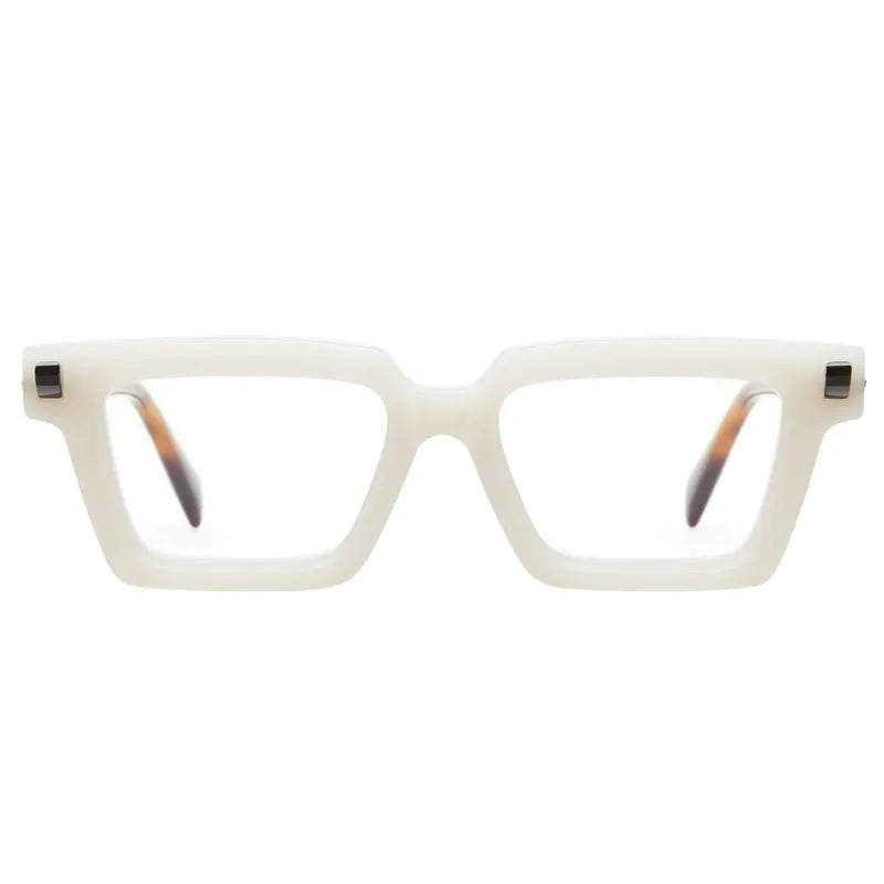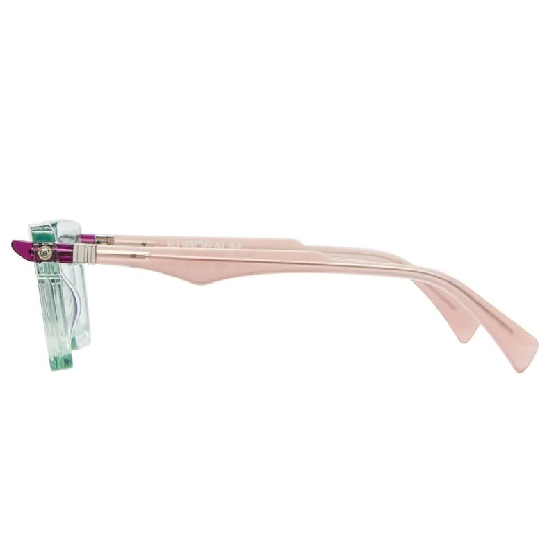 The meticulously designed Q series is characterized by its sweeping lines and forms. Smoothly sculpted temples recall the shape of French curves, originally used to draw Euler spirals. By extending through the front, they mimic the shape of a horn, adding a boundary-breaking feature to this modern retro frame.