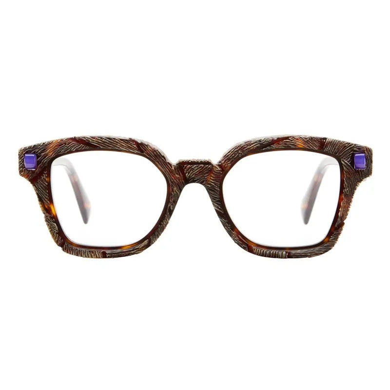 The meticulously designed Q series is characterized by its sweeping lines and forms. Smoothly sculpted temples recall the shape of French curves, originally used to draw Euler spirals. By extending through the front, they mimic the shape of a horn, adding a boundary-breaking feature to this modern retro frame.