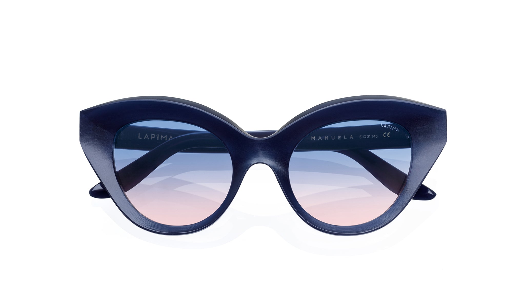 Sailing the seas in style...Manuela has concave surfaces throughout, ensuring that light flows uninterrupted. Aided by the cat-eye design, she gives the wearer's eyes a lift, just like a sail atop a mast.