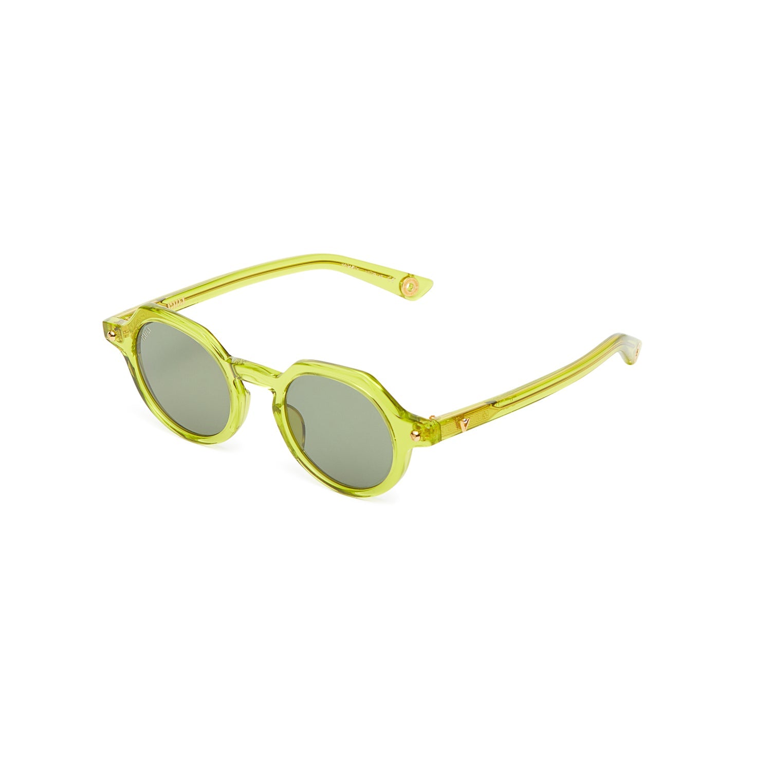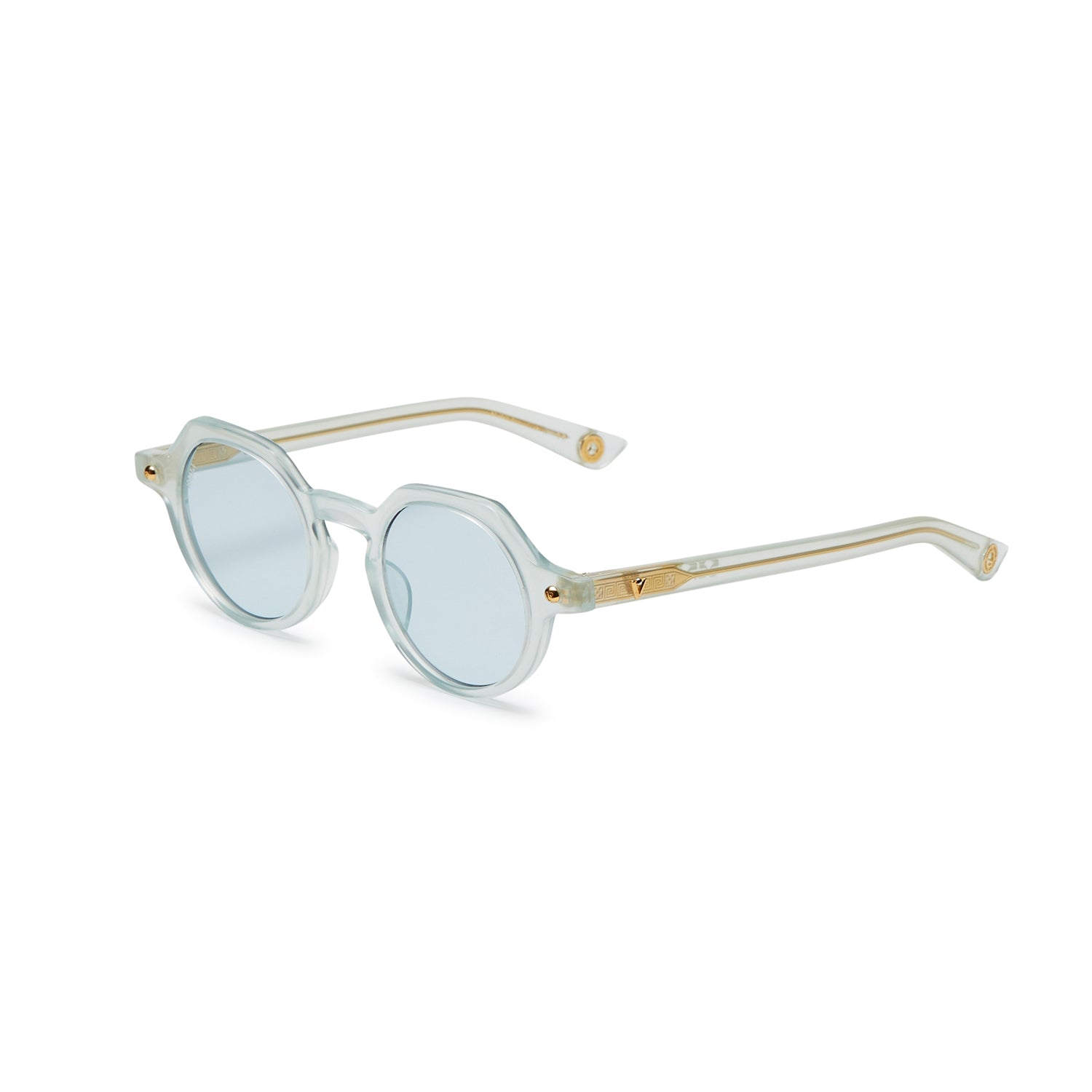 Unisex fit, blunted circular frame w/ minimalist temple design